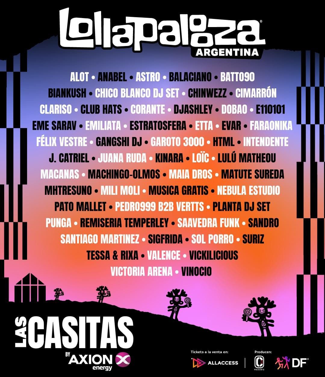 | Al igual que en ediciones anteriores, la novena edición de Lollapalooza en Argentina, contará con Las Casitas by Axion, un lugar de encuentro dónde los mejores DJs de la región tocarán durante los tres días de festival, a realizarse los próximos 15, 16 y 17 de marzo en el Hipódromo de San Isidro. |