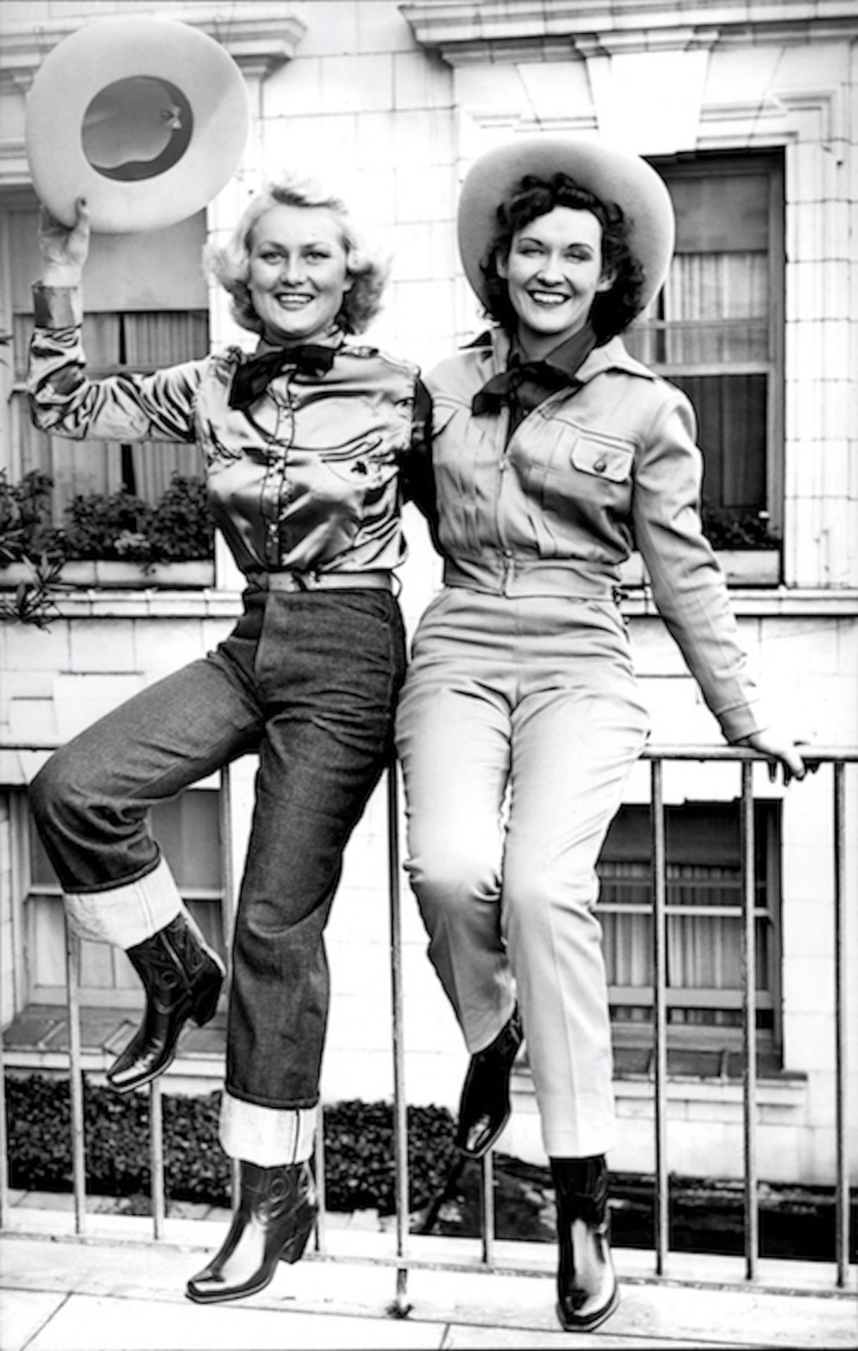 Durante la década de 1930, Levi’s® se convirtió en un elemento básico de la ropa western. Levi’s®, que ya era un favorito entre los vaqueros y los jinetes de rodeo, invocaba el romance del Oeste en su publicidad. Vogue incluso publicó un artículo recomendando los jeans Levi’s® 501® para mujeres que vacacionaran en ranchos para turistas, una nueva tendencia popular. Y en 1939, John Wayne usó un par de 501® Originals con dobladillo cuffed en la película Stagecoach, lo que dio inicio a una relación a largo plazo con Hollywood.