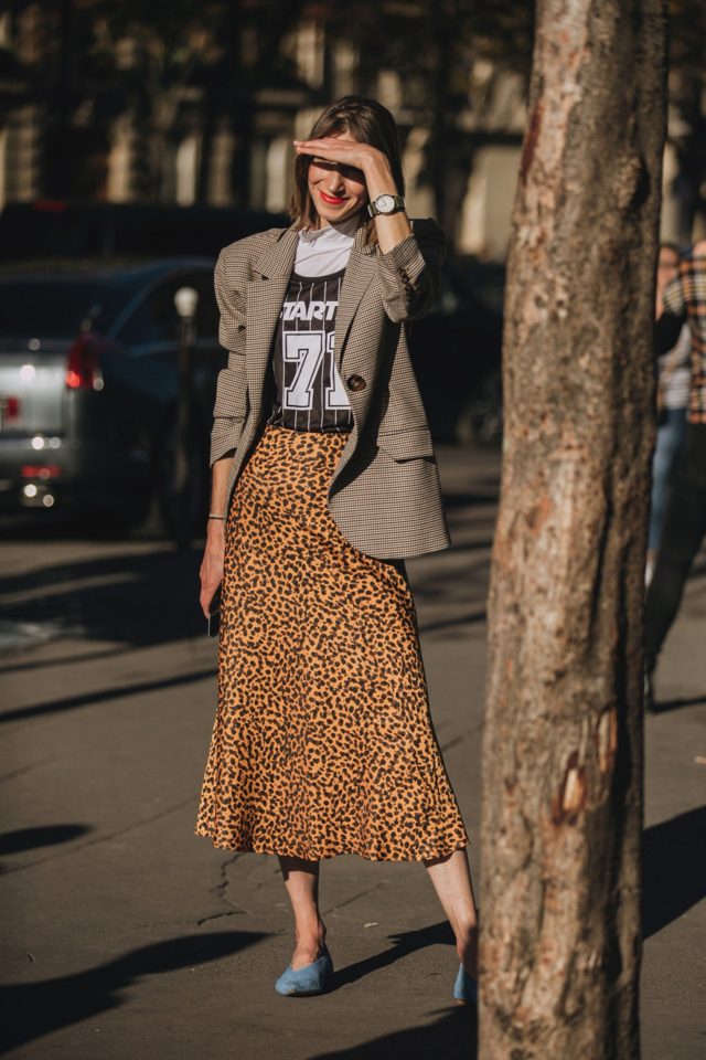 Después de tantos años y tantos estilismos de calle, lo más fácil es encontrar un armario que tenga una falda midi satinada a uno que no lo tenga. ¿El motivo? Que son versátiles hasta decir basta y una pieza perfecta para el entretiempo. Lo mismo funciona con unas bailarinas de perfil arty y blando que con unas sandalias. Las camisetas son su pareja natural y el modo de adaptar el look a unas temperaturas un poco más bajas es sencillo: añadiendo un blazer de cualquier tipo.
