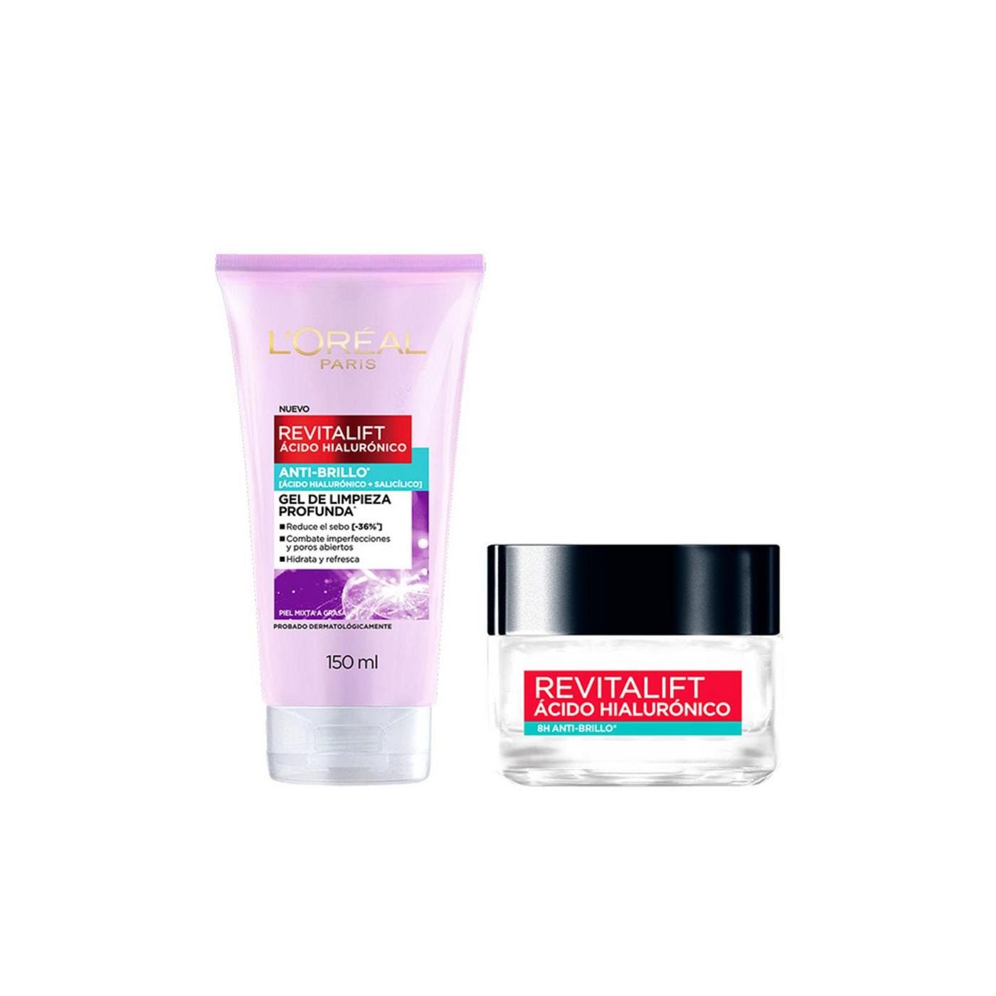 Este Kit está compuesto por un Gel de Limpieza Revitalift Anti Brillo y la Crema Hidratante con Ácido Hialurónico de la misma línea.
