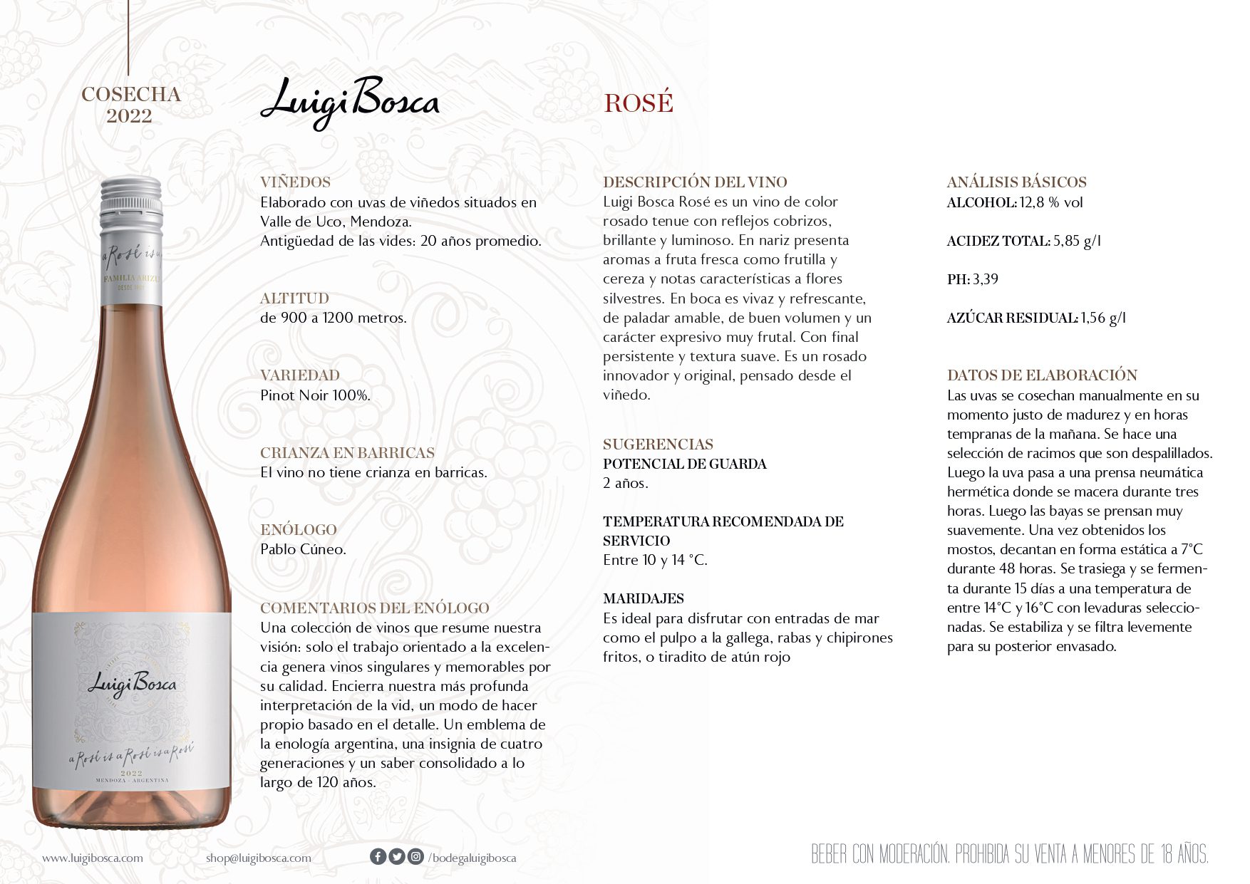 Para esta primavera, te recomendamos el Luigi Bosca Rosé is a Rosé, un vino inspirado en los rosados elegantes de la Provenza y pensado desde el viñedo. Es innovador, versátil y original. Elaborado a partir de la variedad Pinot Noir, es un vino de aromas vibrantes, vivacidad y frescura en boca, con un carácter expresivo muy frutal.