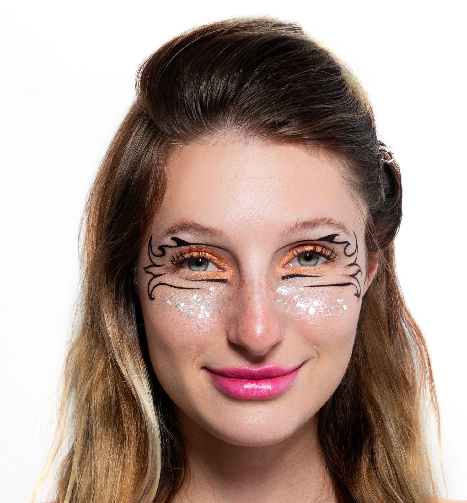 Las propuestas de maquillaje sin género de Faces para el festival hacen foco en los ojos, resaltándolos para darles un protagonismo absoluto. Diferentes tipos de glitter dan fuerza al look y llevan toda la atención a la mirada. La propuesta incorpora la opción de glitter sustentable producido por la marca Ecoglitter, con el fin de potenciar cada look de una manera responsable con el ambiente. El glitter convencional está hecho a base de plásticos y dependiendo de su composición y su tamaño, pueden tardar 100 años en degradarse por completo, en cambio Ecoglitter está compuesto por minerales naturales y teñido con colorantes biodegradables.