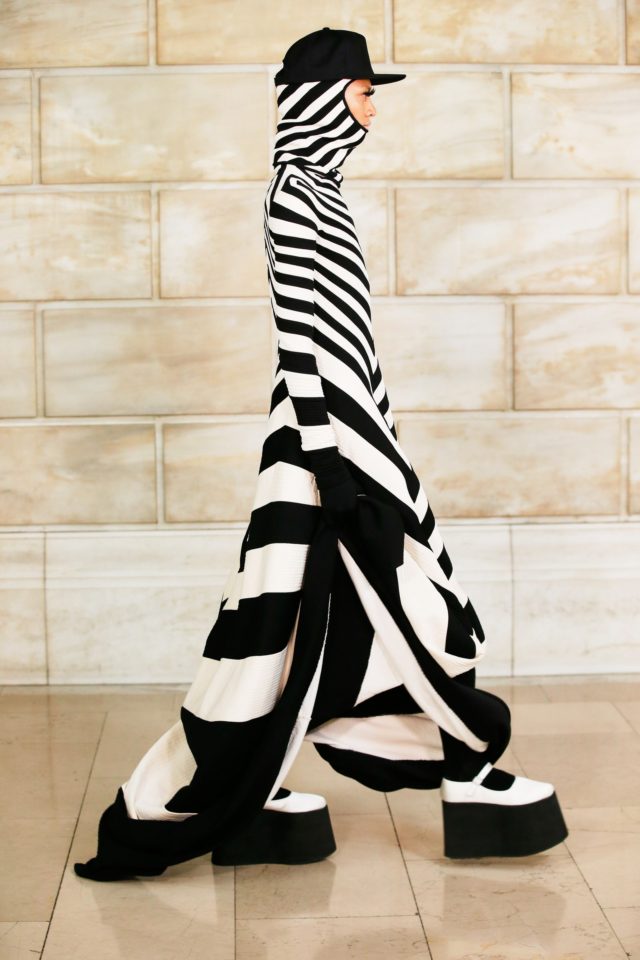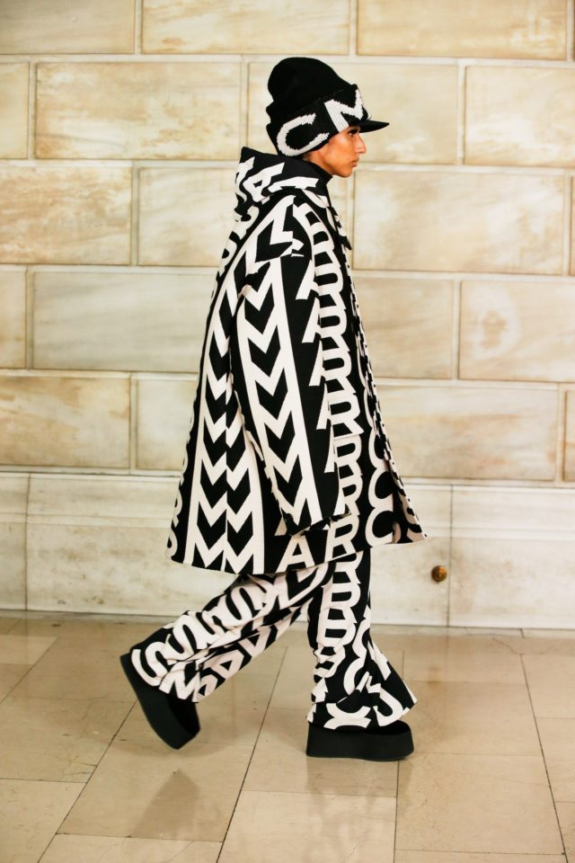 No es solo la paleta cromática, es también el uso de sus estampados: frente a la psicodelia multicolor que impera este verano, la de Marc Jacobs es una apuesta gráfica más contenida pero igual de efectista. El diseñador regresa a los motivos artísticos que definieron también la moda de los últimos coletazos de los 60. Si el otoño pasado era Balmain o Stella McCartney los que rescataban las obras de artistas ‘ópticos’ como Bridget Riley, esta temporada es Jacobs el responsable de semejante grafismo. El diseñador se sirve de las rayas en blanco y negro para construir, de nuevo, impactantes total looks cargados de dinamismo a través de prendas acolchadas y diseños de punto.