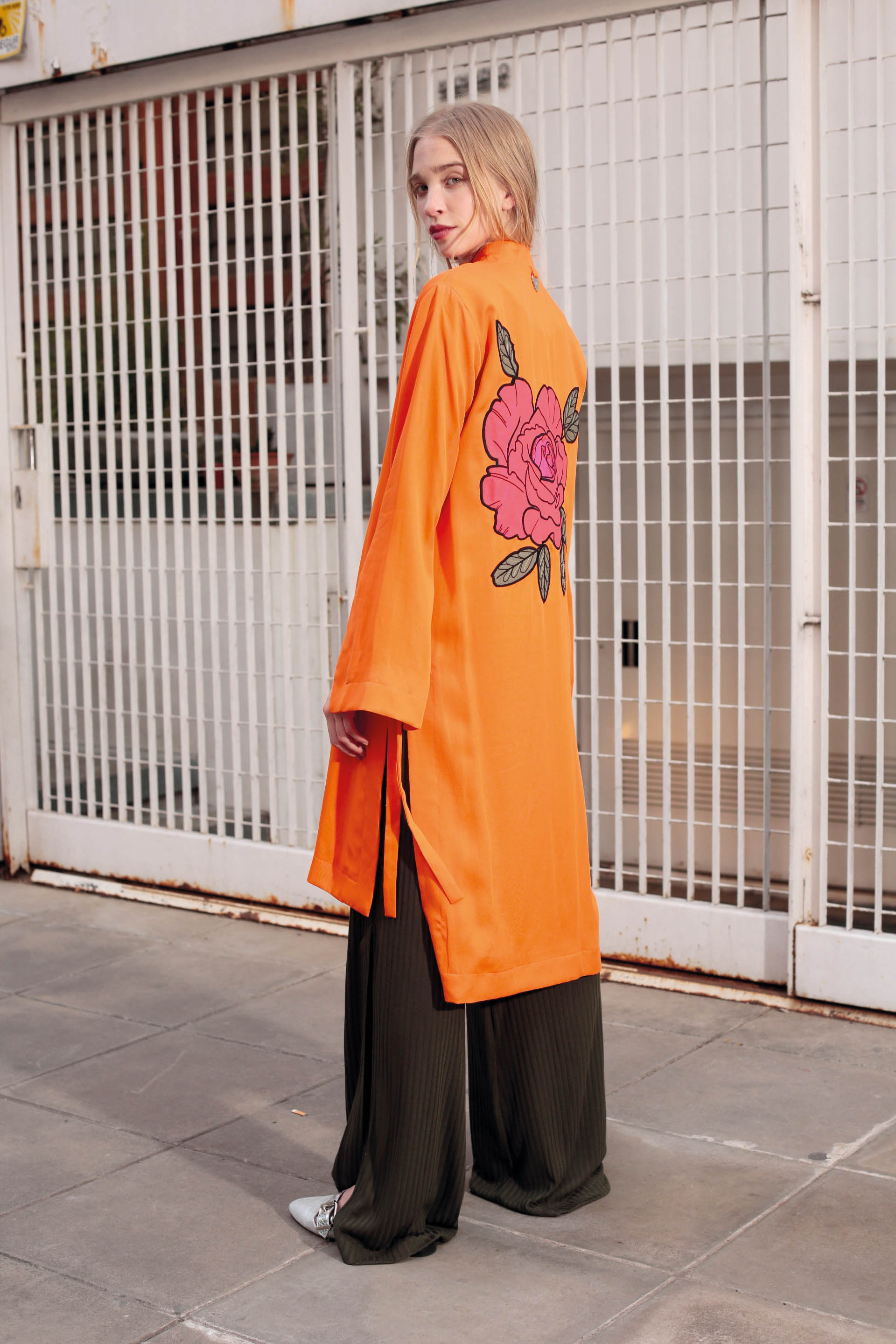 Outfit de noche: Pant Oxford, top, campera de cuero o kimono, túnica Collumna con grandes mangas.