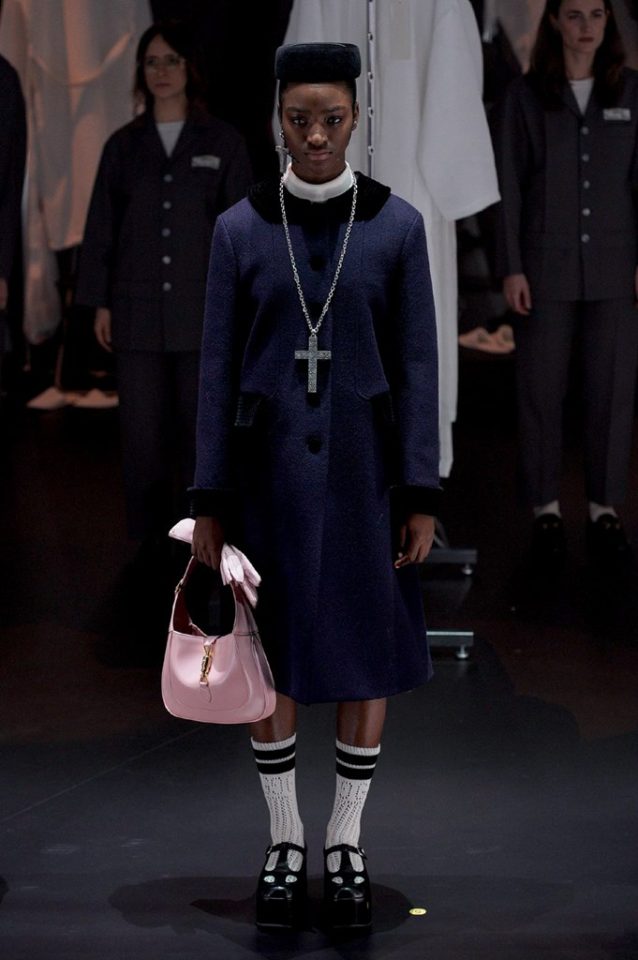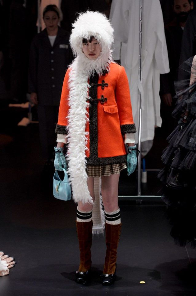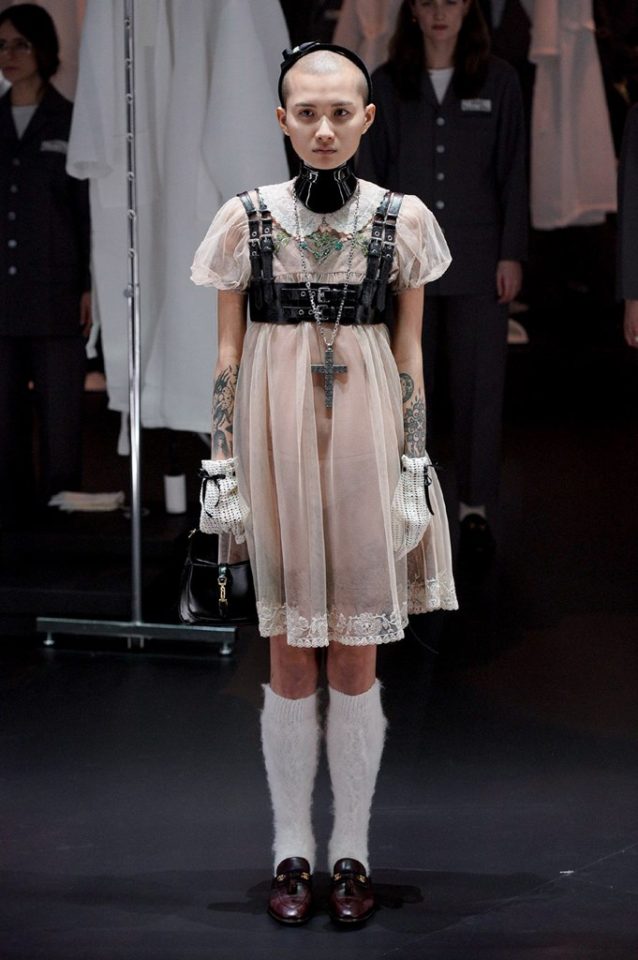 El primer día de la Semana de la Moda de Milán, la firma de GUCCI, dirigida por Alessandro Michele, decidió tomar el backstage en la pasarela. Esta temporada de otoño/ invierno 2020 transcurre al rededor de una calesita de vidrio ocupada por diferentes modelos vestidas como siluetas victorianas y peregrinas.