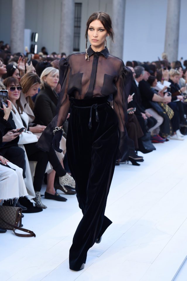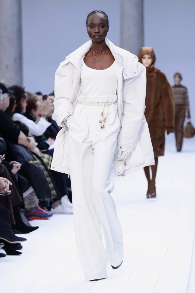 MAXMARA: Blazers, blusas, abrigos y sobretodo, vestidos con hombros XXL fueron los elegidos para esta presentación en Milan Fashion Week. La marca apuesta por piezas en blanco o en negro, con algún que otro toque de azul marino. Ian Griffiths se inspiró en la playa dando diseños minimalistas y con mucha sobriedad. Para estilos de noche, la propuesta se aprecia con tejidos en terciopelo y transparencias.