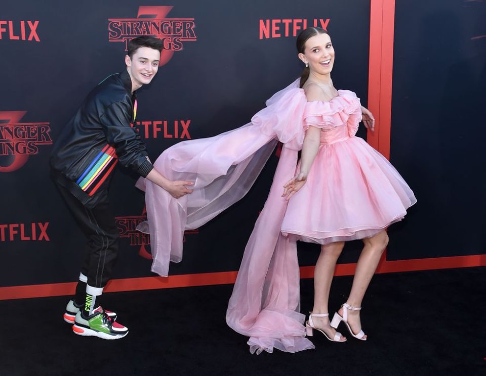 La actriz Millie Bobby Brown se robó toda las miradas en la alfombra roja con su vestido de princesa de color rosa y su carismática presencia. Por su parte, su compañera y protagonista Winona Ryder optó por un vestido más sobrio de color negro.