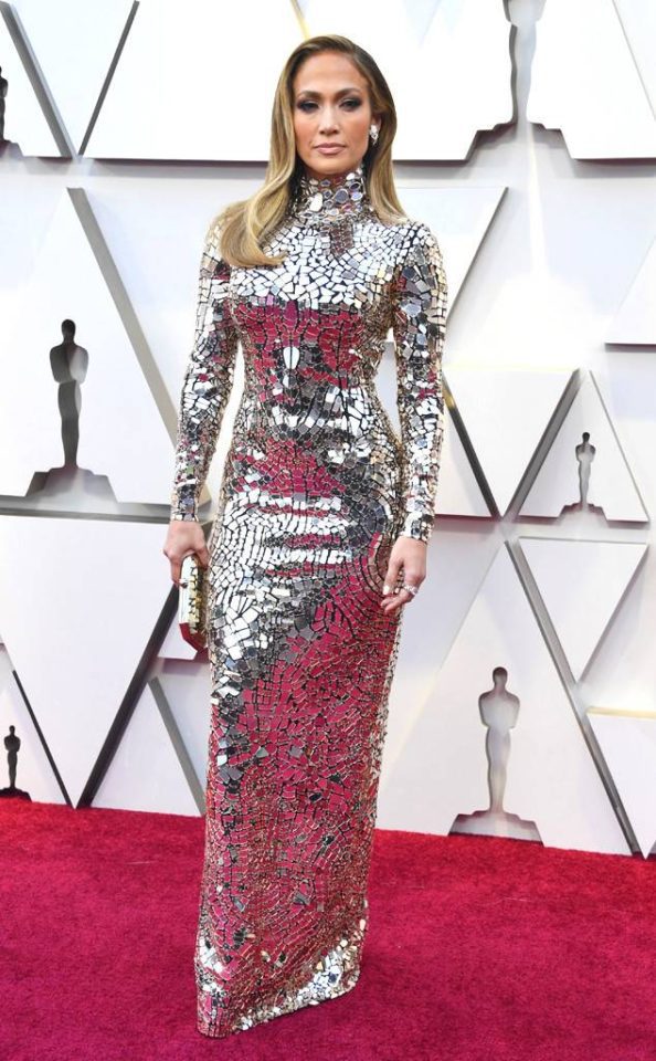 3. La cantante Jennifer López lució un vestido largo con cuello alto del diseñador Tom Ford. El diseño con paillets de cristales daban un efecto a mosaico.