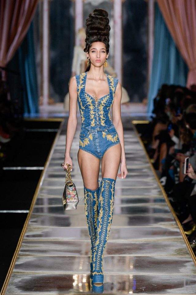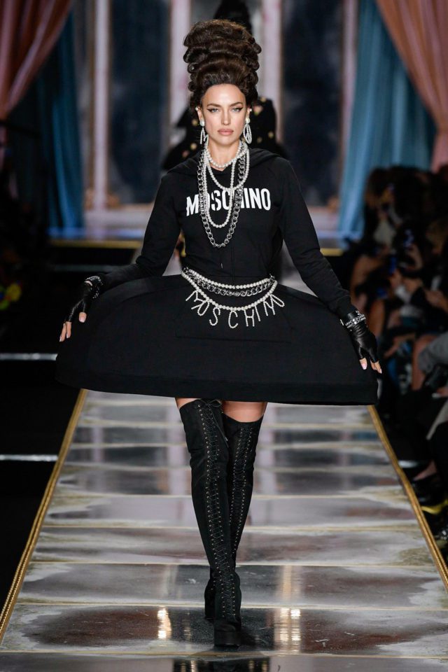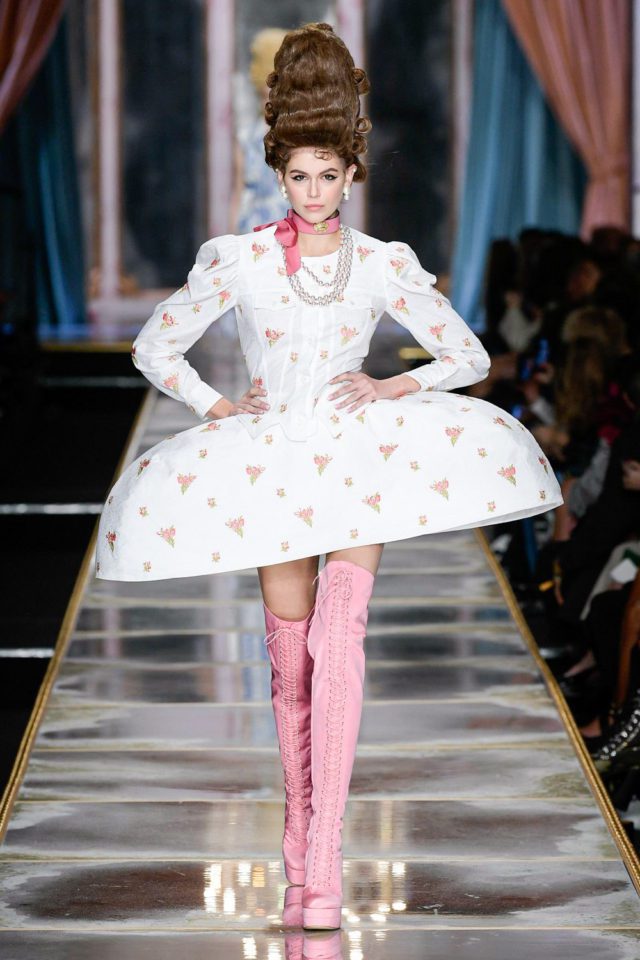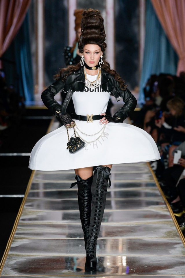 El pasado jueves, la pasarela de la gran semana de la moda en Milán, contó con la presencia de las supermodelos internacionales. Desde Kaia Gerber, Irina Shayk hasta las renombradas hermanas Hadid, Gigi y Bella. Corsets denim, miriñaques, botas mosqueteras y grandes pelucas de década, son los diseños que la firma incorporó para el próximo otoño/invierno 2020. Los grandes detalles que marcaron la pasarela fueron los lazos, perlas, hombreras y volúmenes que se implementaron en cada prenda. Entre la gama de colores para esta colección que pudimos apreciar fueron los tonos pasteles como rosa, celeste y crudo; pero por supuesto los blanco y negro tampoco faltaron.