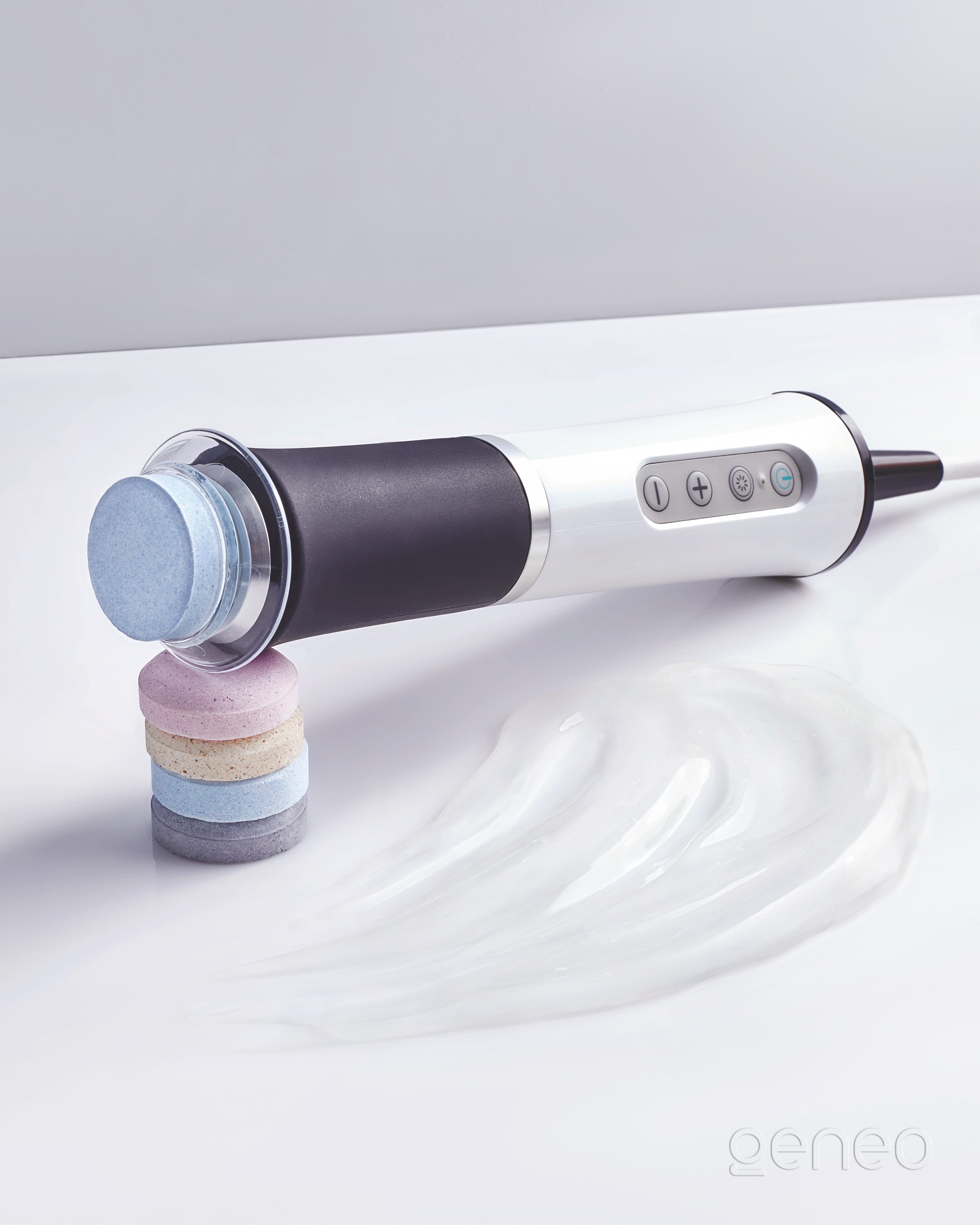 Ultrasound: Al introducir ondas de ultrasonido en la piel, Geneo mejora el efecto de reposición y revitalización. Las ondas de ultrasonido mejoran el flujo sanguíneo y ayudan a una mejor absorción de los ingredientes activos. Este tratamiento seguro e indoloro produce una mejora visible de la textura y el tono de la piel.