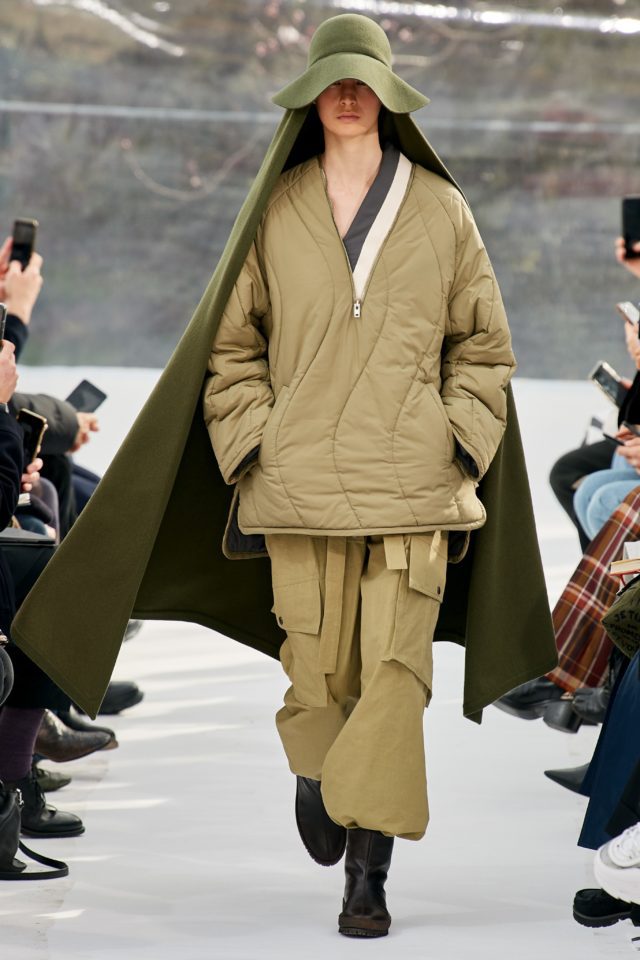 Kenzo: El director creativo de la marca, Felipe Oliveira Baptista, entregó una versión de streetwear 2.0. Suéter extragrande, abrigos largos, las capas y las evoluciones de manga larga en el tabardo, fueron los diseños que se presentaron. Se inspiró en las Islas Azores del Océano Atlántico, donde el atuendo tradicional con capucha, se transmite generación tras generación. También hubo vestidos estampados en diferentes tonalidades pasteles y algo que sobresalió de las otras firmas, fueron los sombreros que se utilizaron para completar los estilos.