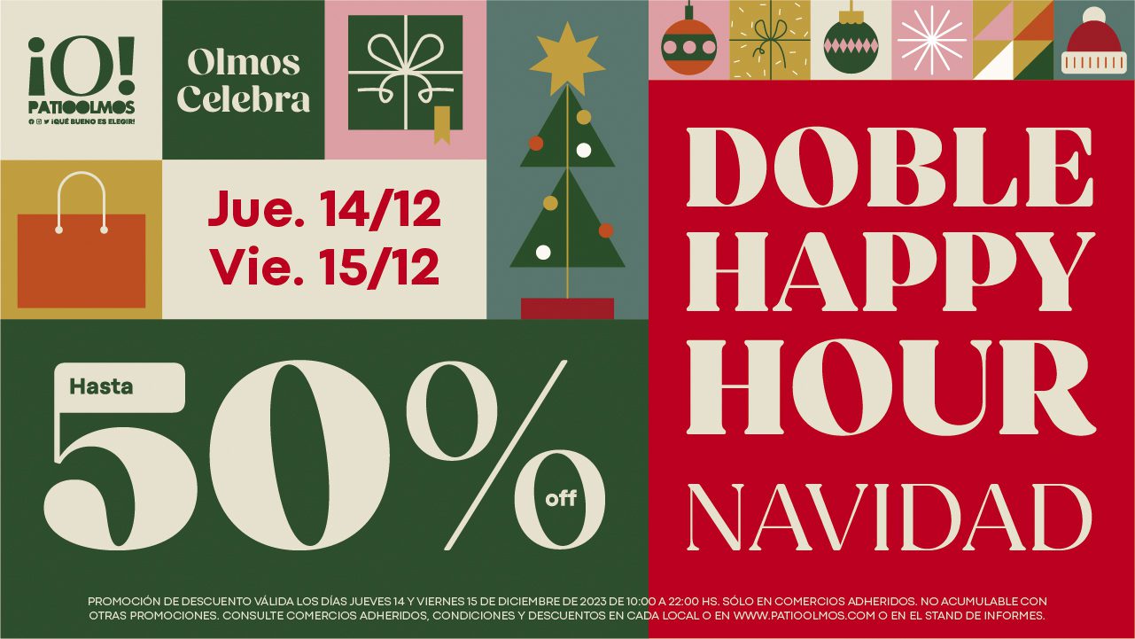 El jueves 14 y el viernes 15 de diciembre el Patio Olmos ofrece una promo navideña espectacular: ¡Hasta el 50% de descuento en más de 70 marcas adheridas!