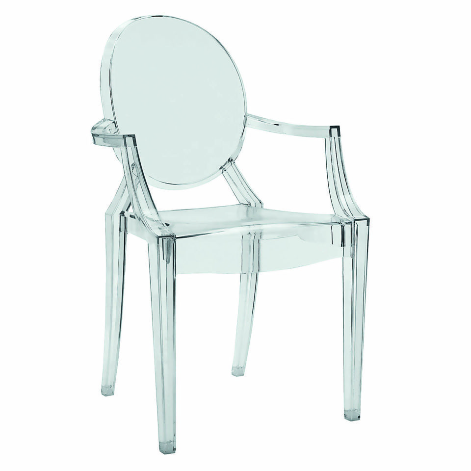 La silla Louis Ghost, diseñada para Kartell es otro referente de Starck a nivel mundial. Pretende ser el “tatara-tatara-nieto de la silla Luis XV” al retomar la esencia de su forma pero reinterpretándola en un contexto contemporáneo.