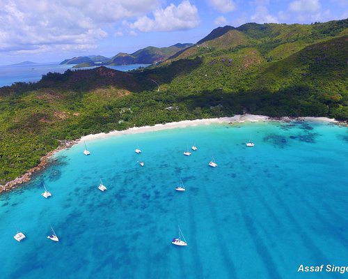 Rodeada de vegetación y formaciones rocosas, Anse Lazio es una playa de ensueño con arena suave y blanca y aguas increíblemente azules, ideal para nadar y hacer esnórquel. Disfruta de cocteles y fruta bajo palmeras sombreadas, luego disfruta del impresionante atardecer. La playa es bastante amplia, por lo que generalmente es fácil encontrar un lugar donde pasar el día y relajarse.