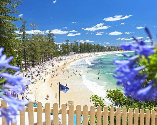 Manly Beach está en el centro de todo, literalmente. A un corto paseo desde el distrito central de negocios de Sídney, está rodeado de tiendas, cafés y más. Nada o surfea en las cálidas aguas (hay una zona con red para nadar y guardavidas de guardia), o zambúllete en la piscina de agua salada. Luego, pasea por el largo paseo de la playa y disfruta de las vistas panorámicas.