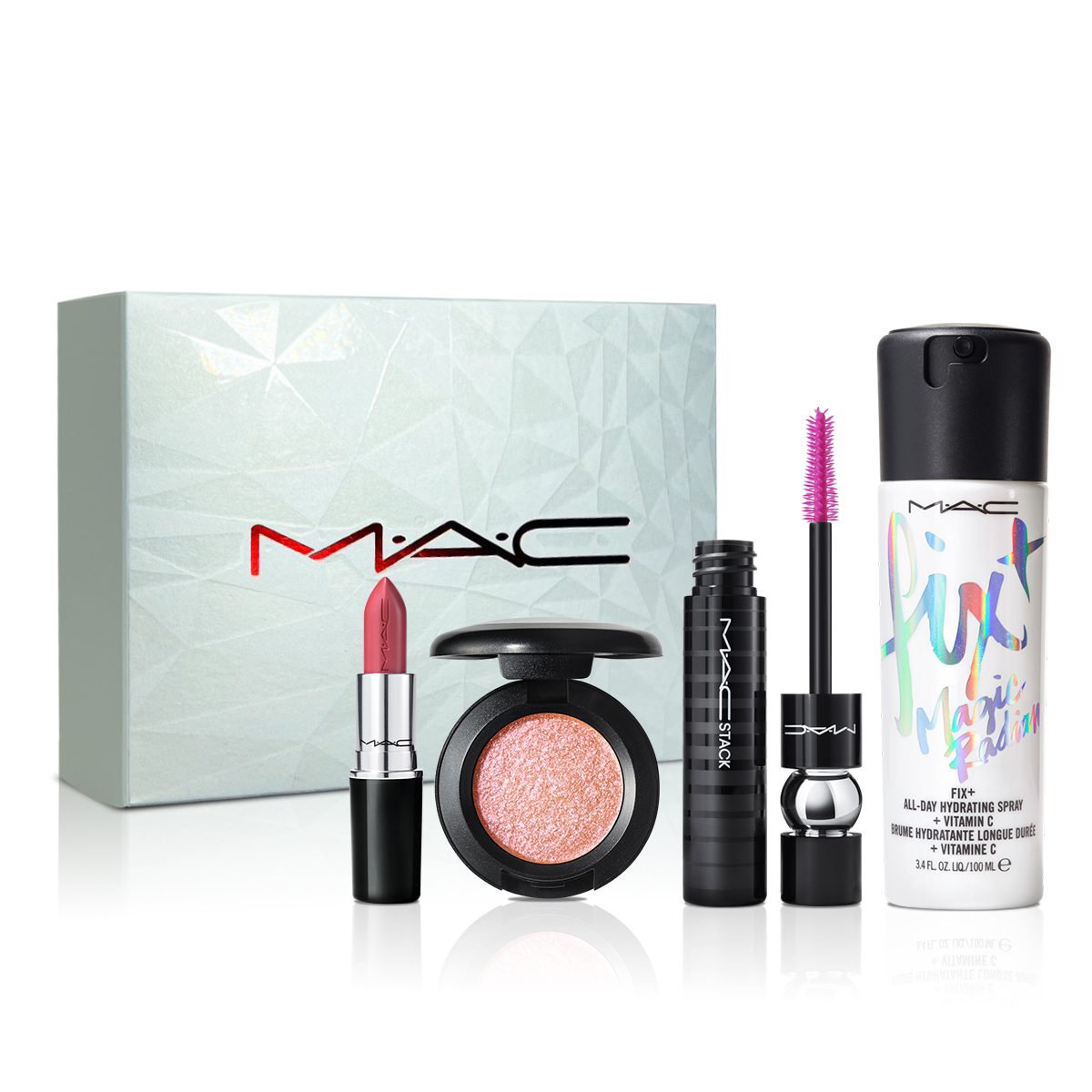 MACStack Mascara Black: Capas infinitas de volumen voluptuoso + longitud lujosa. Esta fórmula sin fin nunca vista, construible y resistente a los grumos le brinda un volumen personalizable desde el nivel natural hasta el siguiente nivel, junto con una longitud instantánea.