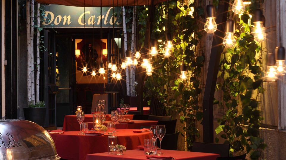 El Don Carlos, el restaurante, rinde homenaje al maestro Giuseppe Verdi que permaneció en el Grand Hotel et de Milan por más de veinte años y que, además, escribió en sus mesas algunas de sus piezas más célebres. Es de allí de donde el restaurante toma su nombre. En un marco íntimo y refinado, recreado por pinturas, bocetos y escenografías procedentes del museo del Teatro alla Scala, el Don Carlos propone una cocina italiana a la luz de los antiguos candiles de plata. El menú interpreta con originalidad y gran finura platos sencillos de fuerte impronta y sabor mediterráneos. Una cocina tradicional que respeta las temporadas de cada ingrediente, es de los más exclusivos polos gastronómicos de Milán. Permanece abierto a diario para cenar e, incluso, tarde en la noche, para recibir a los concurrentes a La Scala post función.