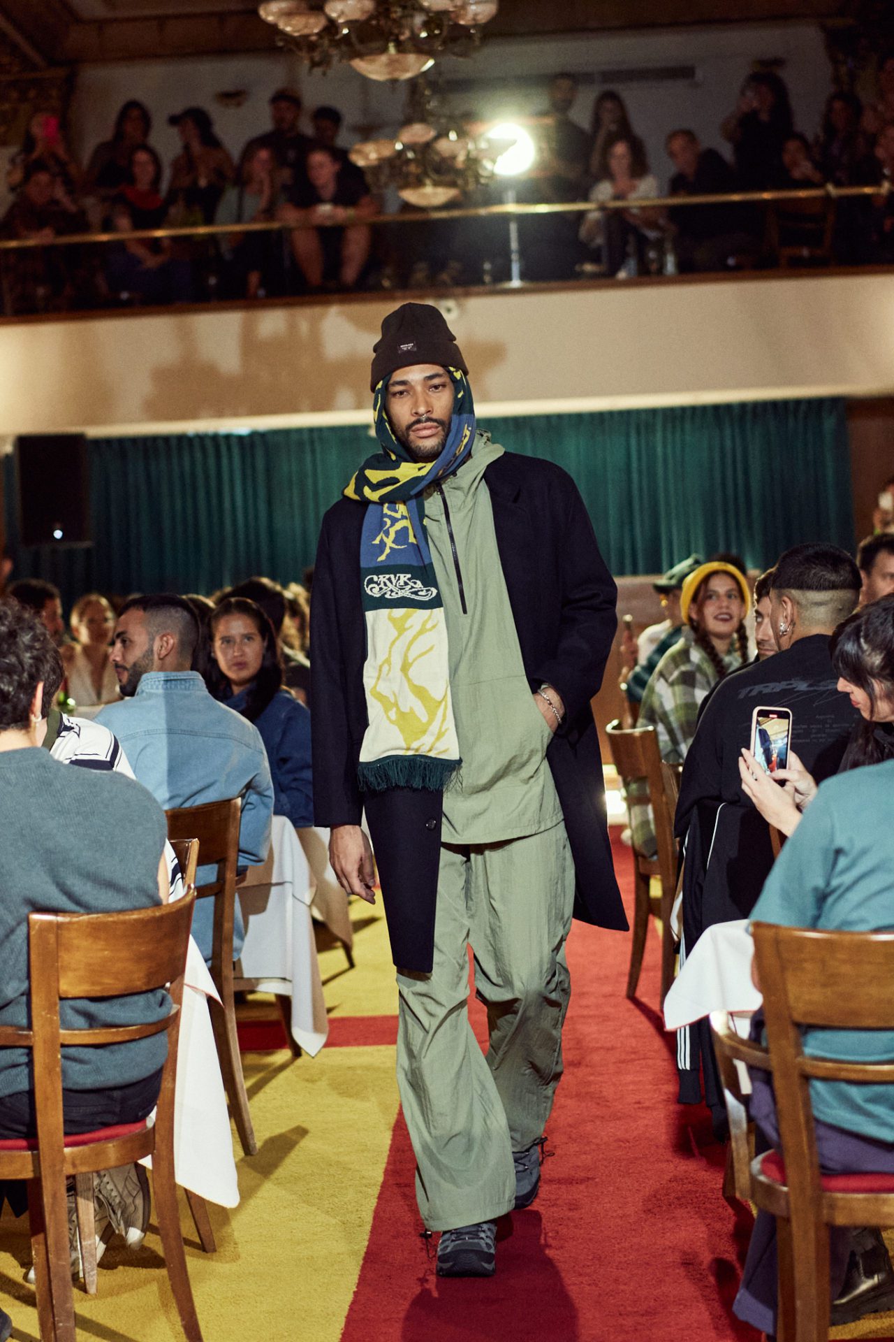 Prendas como buzos y camperas superpuestas, accesorios como bufandas y gorros en colores tierra, marrón, verde, amarillo, gris y negro tuvieron fuerte presencia. Entre las figuras convocadas hubo músicos y actores como Emma Hourvillieur, Paprika y Tomás Ferrero, Martín Garabal, Martín Piroyanski