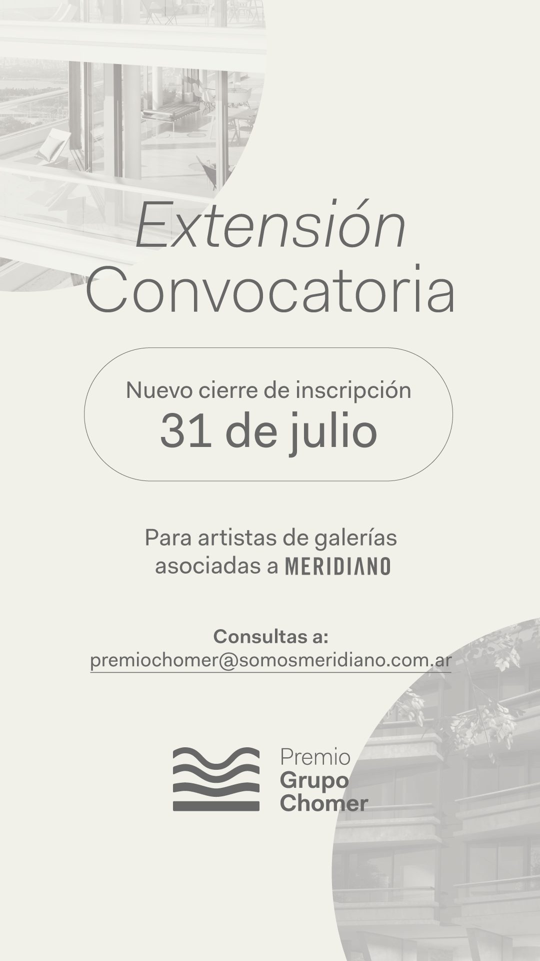 Grupo Chomer, la compañía argentina dedicada a la inversión y el desarrollo de negocios inmobiliarios, presentó el Premio Grupo Chomer en alianza con Meridiano, la Cámara Argentina de Galerías de Arte Contemporáneo. La iniciativa fue lanzada en abril y quienes deseen participar podrán inscribirse y presentar sus proyectos hasta el 31 de julio inclusive.