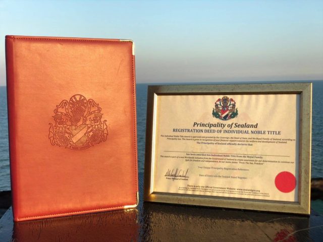 El famoso músico Ed Sheeran es el Baron Von Edward Sheeran de Sealand desde 2012.