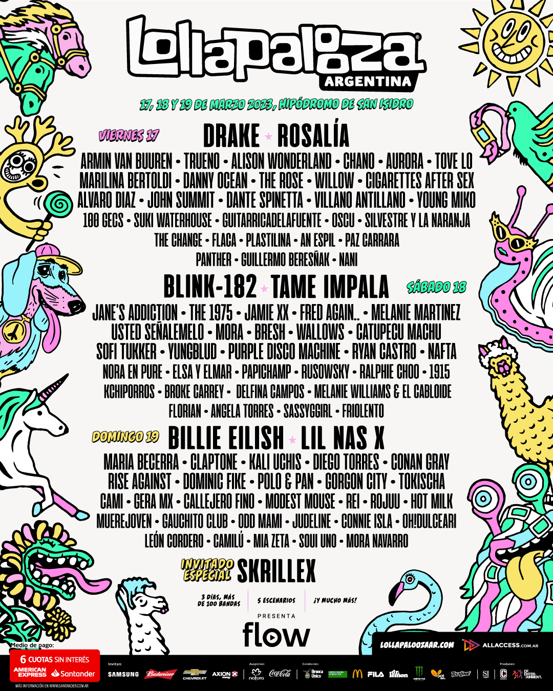 Al imponente lineup, que encabezan Drake, Tame Impala y Billie Eilish, en estos meses se han ido subiendo artistas que hoy forman parte de los rankings mundiales como Willow, The Rose, Aurora y ahora se confirma la super novedad de la participación Skrillex.