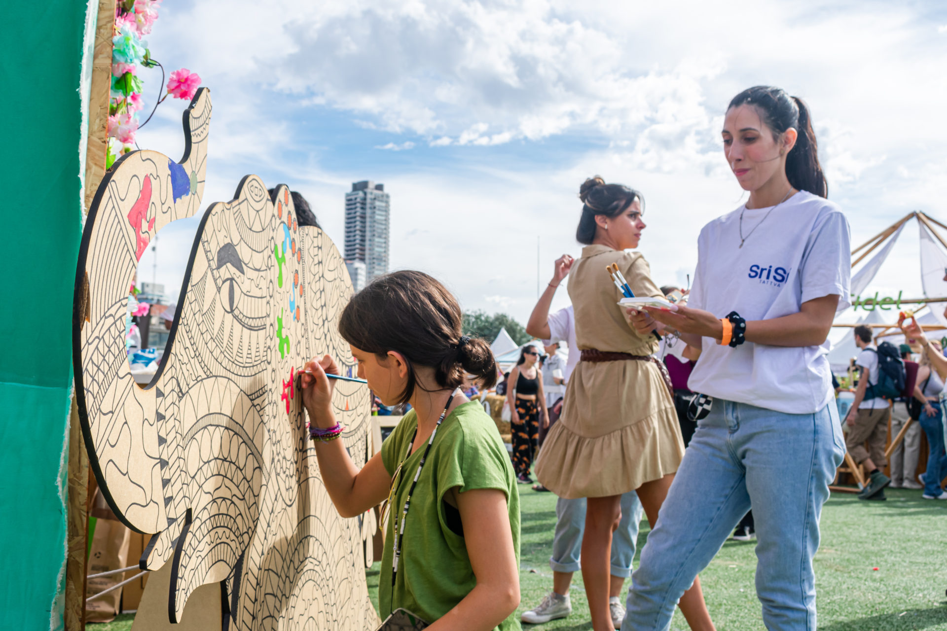 Con un stand diseñado a partir de madera totalmente reciclada; un mural de arte que representaba el mapa de la India con diversos elementos característicos de su cultura, y una hamaca clásica de madera, crearon el perfecto photo opportunity para que todos los asistentes pudieran aprovechar el espacio y sacarse una foto. Además, colocaron un elefante de madera para que los más chicos que se acercaban al stand se diviertan y pudieran colorear junto a su familia.
