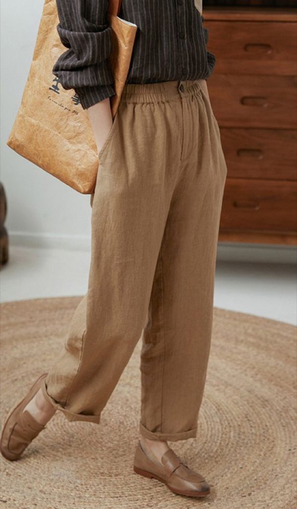 Su principal característica es la pierna ancha y redondeada que se afina en el tobillo y el ruedo se eleva por encima de éste. A diferencia de los slouchy, estos pantalones son de tiro alto, medio o bajo y se llevan en diferentes texturas como la gabardina, el lino o el denim.