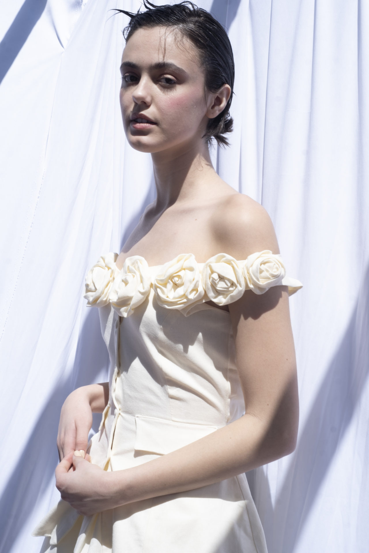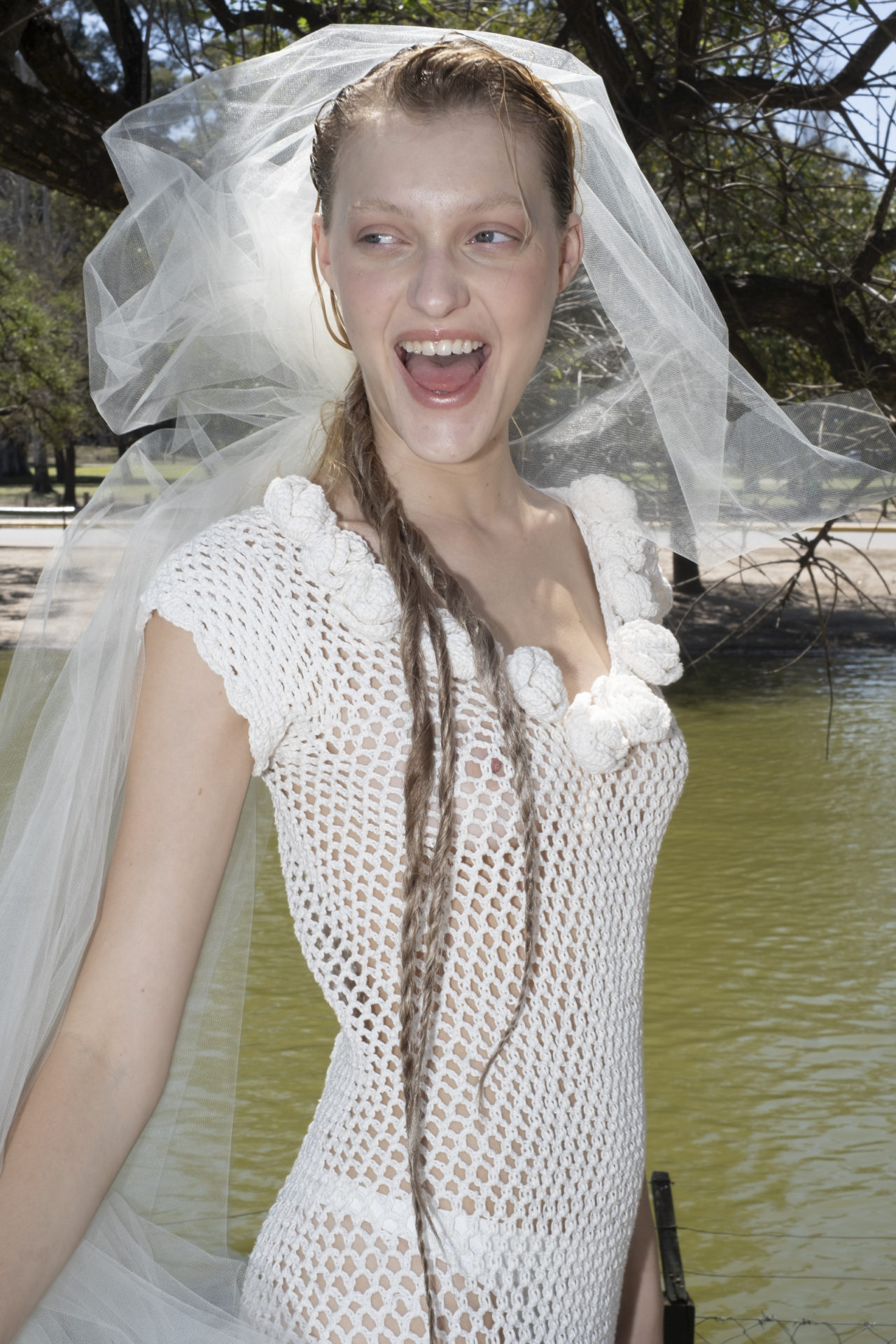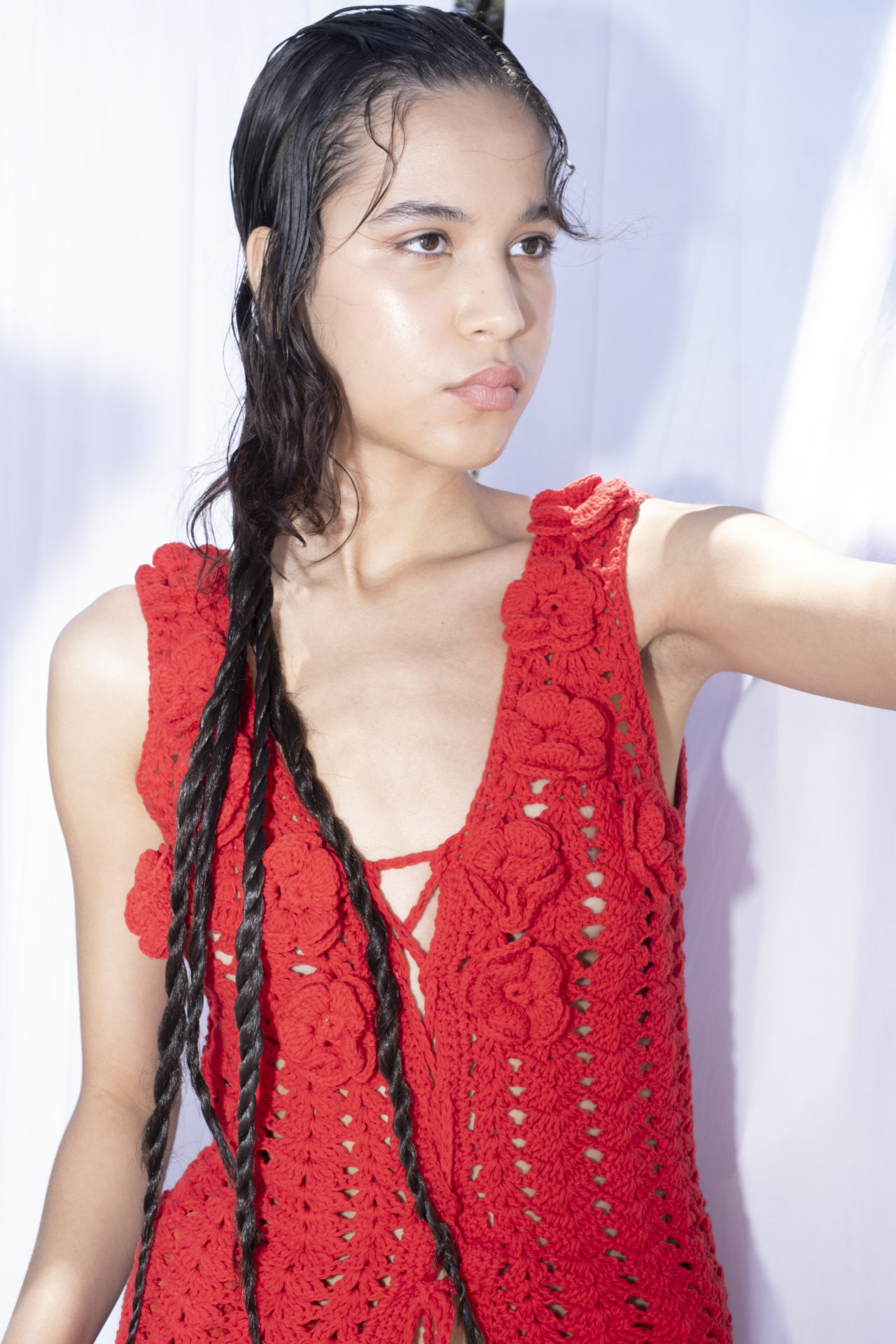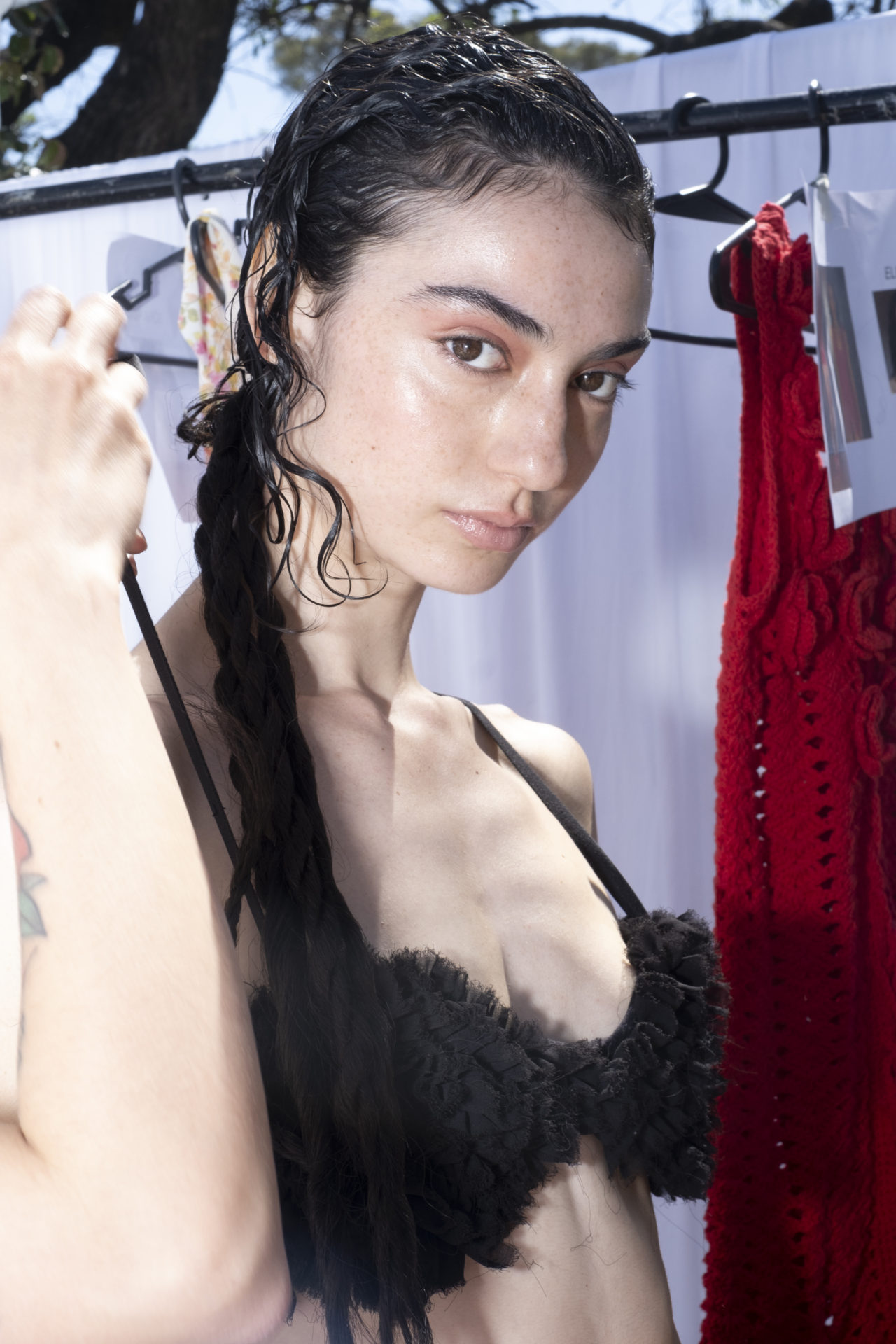 Con el sound design de Tobey, Tach se atreve a involucrarnos en un universo Punk. Un territorio disruptivo que nos invita a pensar en la coyuntura social proponiendo materiales opuesto pero complementarios: lino, tejido de crochet en algodón, gasa y bordados involucrando a comunidades oriundas del Uruguay.