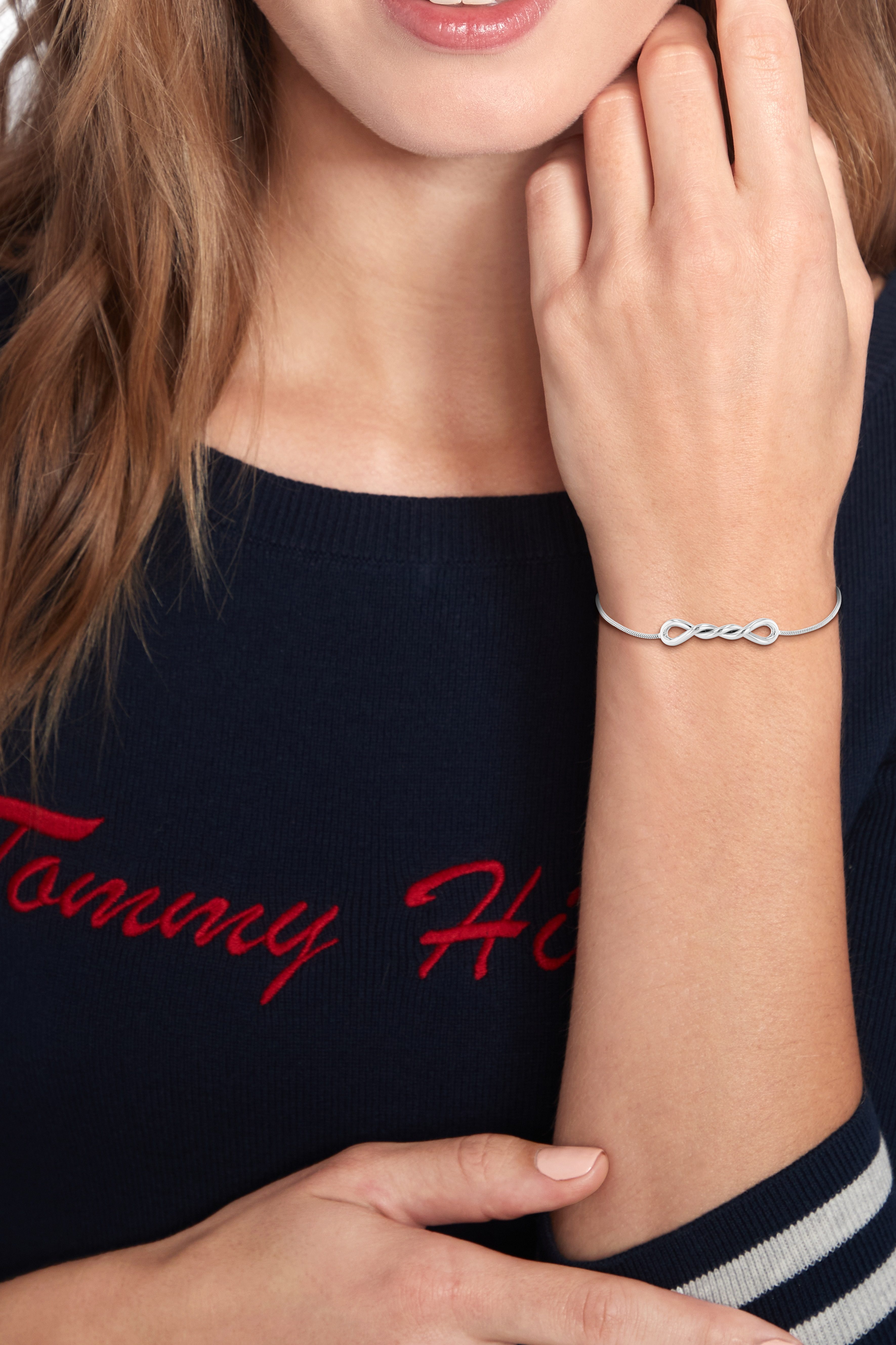 El look se completa con la nueva pulsera Tommy Hilfiger Twist, una pieza de joyería refinada,  minimalista y elegante, ideal para mujeres con estilo propio que saben brillar por sí mismas.
