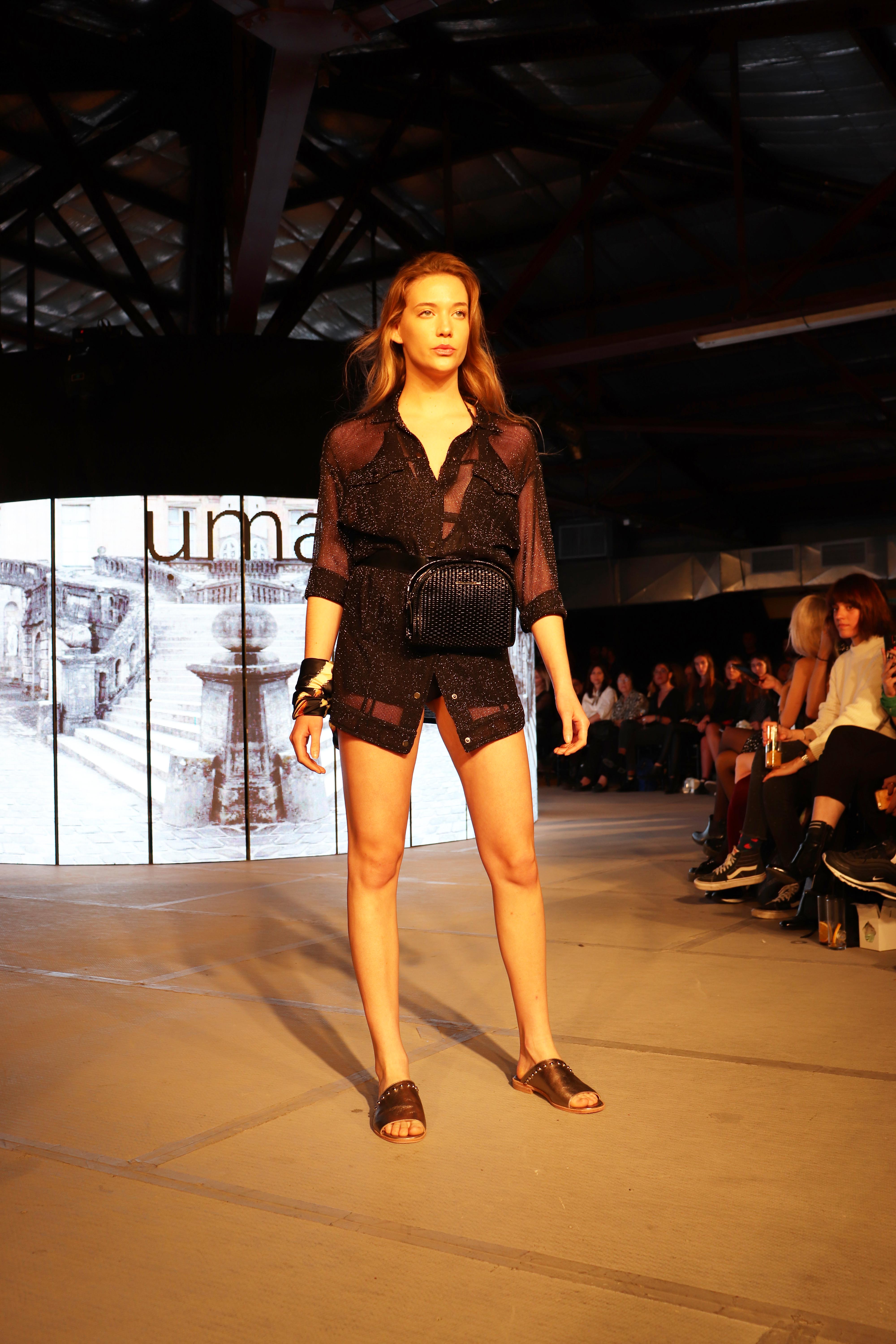Uma presentó para esta temporada una colección más urbana y rockera. El cuero, las transparencias, los toques metalizados, los trajes en colores pasteles y las riñoneras son lo último que trae la Uma para esta primavera/verano.