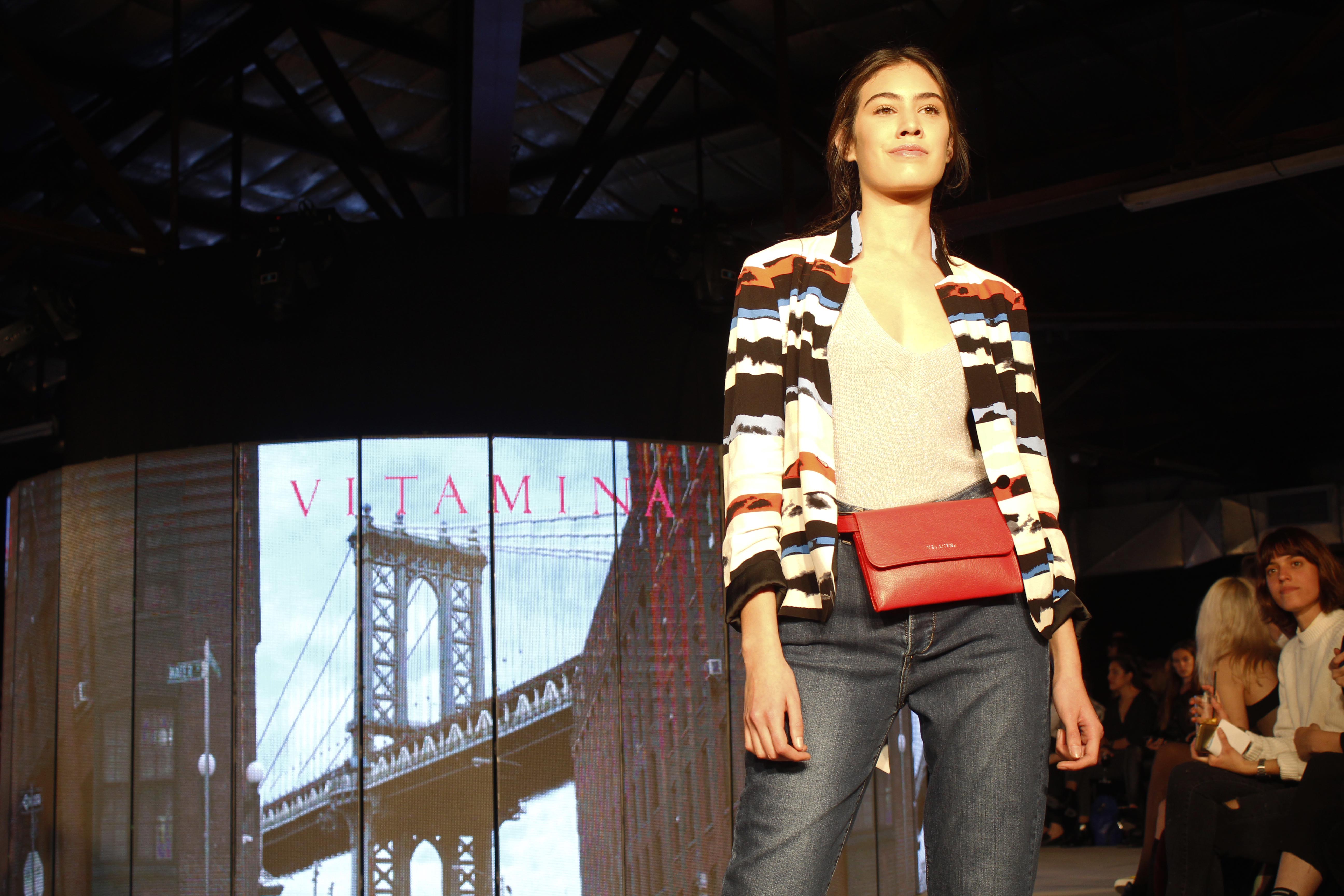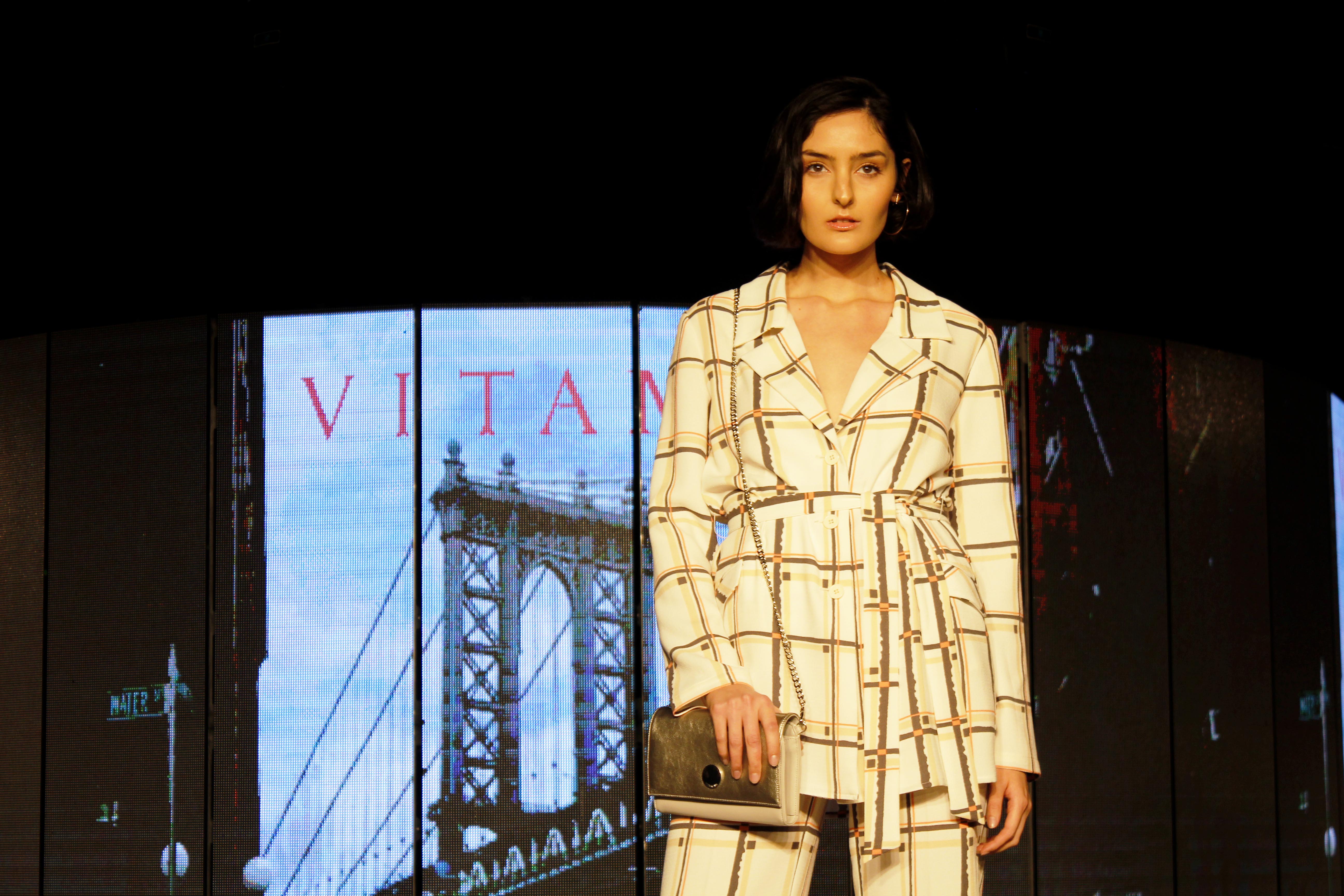 Vitamina fue la encargada de abrir la pasarela. Los diseños de esta primavera se destacan por el color, las texturas y las estampas con flores, rayas, animal print, lentejuelas y bordados. Su combinación permite crear looks glamorosos, versátiles y urbanos. La gama de colores para esta temporada son el amarillo, el rojo, el azul Klein y el fucsia que juegan y se combina con colores pasteles. Sin dudas un infaltable de los 90′ que regresó para quedarse son las riñoneras.