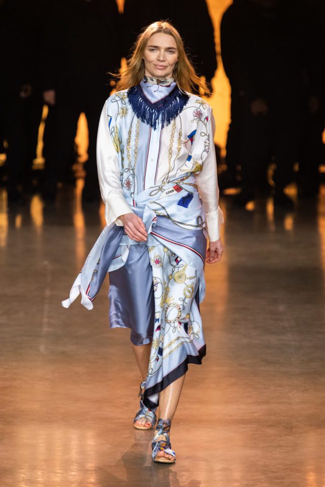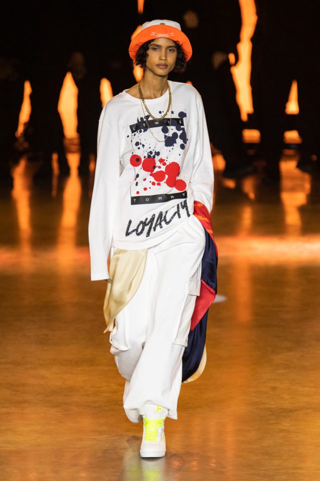 «Diría que hay tres capítulos diferentes: uno es todo sobre Hamilton junto a  Tommy. Otro es sobre Lewis, Tommy y H.E.R. Y por último, uno que es puramente la colección de Hilfiger.»- Explicaba el diseñador. Bajo el lema“Estilo para todos”, en esta temporada, la firma ha puesto su punto inicial en la sostenibilidad, la inclusión y la diversidad. Prendas pensadas para todo tipo de cuerpos y en todas las tallas, ya sea en las líneas sports o en las líneas de diseños más refinados. Desde blazers, chaquetones, camisas, camperas, buzos overside, hasta pañuelos, vestidos de red en tonos oscuros y conjuntos de trajes azules.