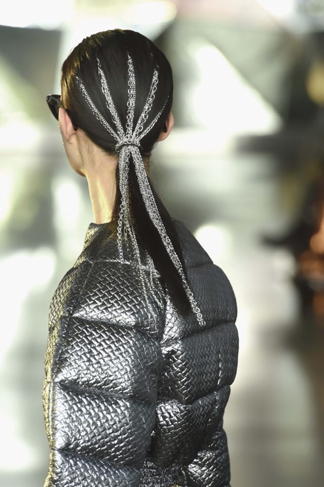 Otra gran tendencia que se vio en las pasarelas de la Gran Manzana son los accesorios en el cabello. Desde hebillas para el Streetwear hasta looks más jugados en pasarela como lo es la coleta straight que se propuso en el desfile de Christian Siriano con un efecto wet.