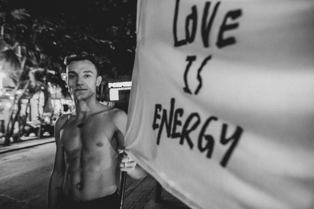 El evento dio inicio a las 18:30 horas con un dip de música y una celebración del amor donde cada invitado escribió sus intenciones en un papel. A su vez, recibieron prendas de la propuesta de bandera remera blanca de la marca, con la frase “LOVE IS ENERGY”.