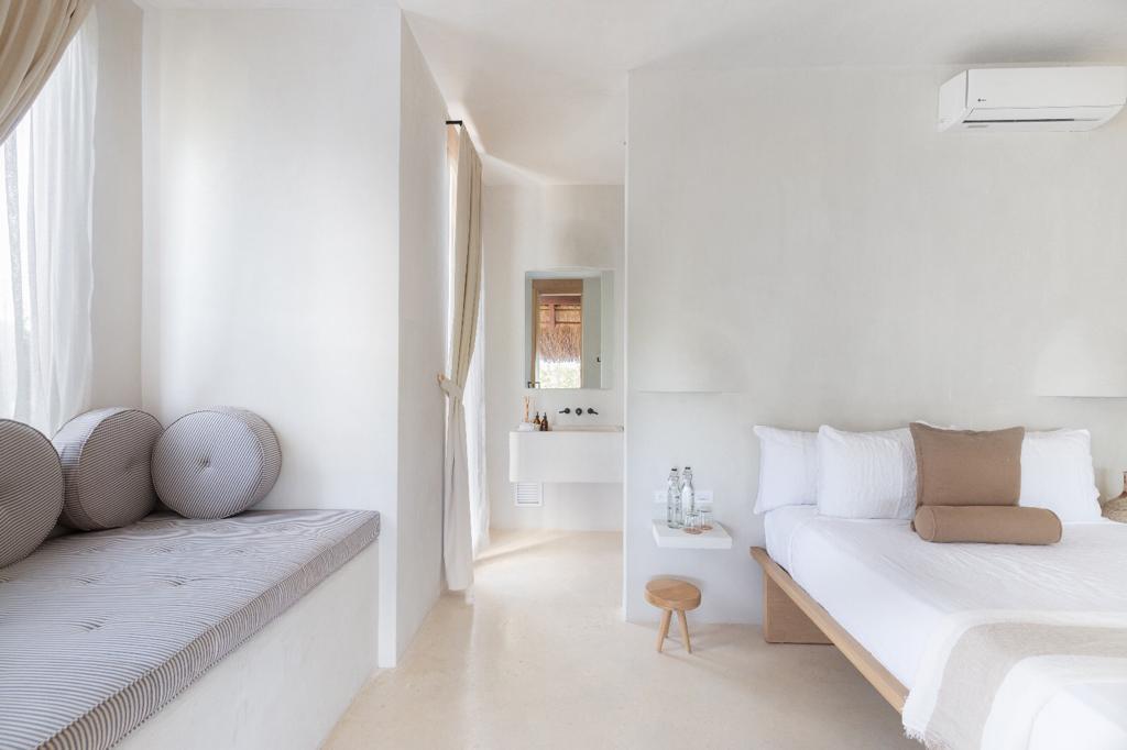 El hotel tiene un diseño súper minimalista con detalles en blanco, creando una comodidad visual cálida en tus días en Tulum.