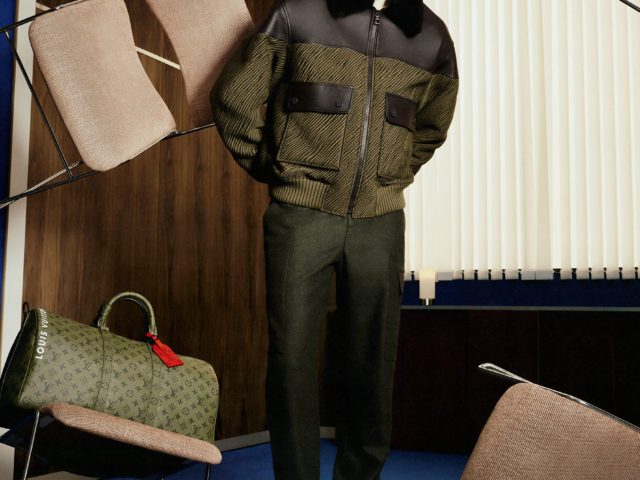El patrón Damier verde hierba se aplica a los íconos de bolsos de la casa adornados con encantos de cuero rosa en forma de flores y forro con motivo de Terrier Airedale. Incluyen un Sac Golf y un mini bolso cruzado de golf, mientras que un tablero de ajedrez de viaje viene con piezas de ajedrez dibujadas a mano por Tyler, The Creator, evocando chocolate derretido. El Monograma Escarpado aparece en cinturones y bolsos de color chocolate o vainilla de la Maison, incluido un transportador de perros Sac Chien y un baúl Courrier Lozine 110 de edición especial. El motivo anima aún más cinco nuevas formas de bolso: un Messenger Envelope, un WW Envelope y un Pouch Envelope, así como una Bumbag Rush y un bolso con correa en forma de perro. Un Keepall y un organizador de bolsillo se manifiestan en cuero Epi XL azul claro, mientras que los accesorios incluyen un estuche con forma de éclair con glaseado de cuero marrón chocolate con el logo de LV.