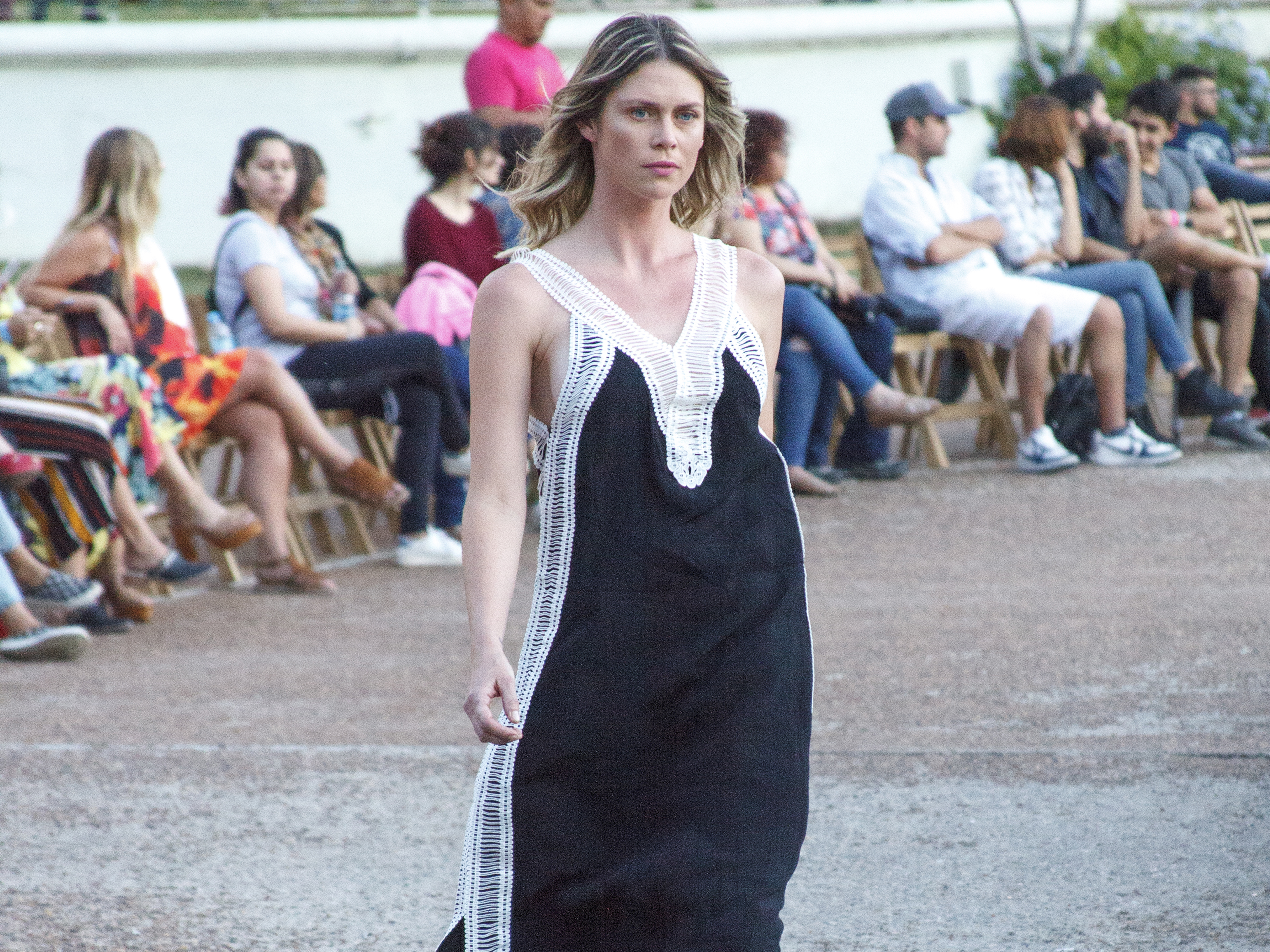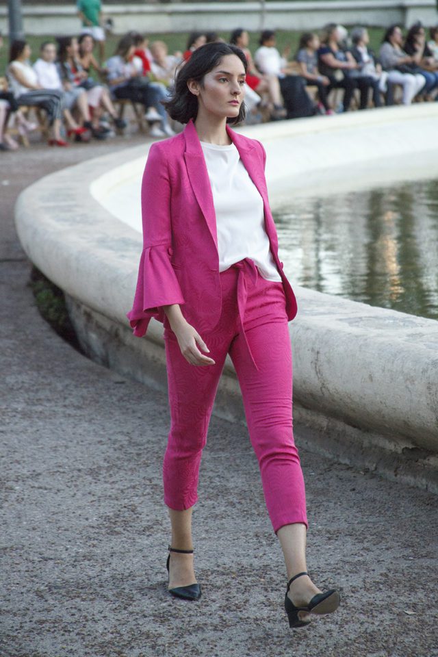 El desfile contó con un formato 360, donde los modelos recorrieron la circunferencia de la gran fuente protagonista del Paseo Sobremonte enmarcado por la vegetación y dos edificios icónicos de Córdoba como el Palacio de Justicia y el Palacio 6 de Julio.