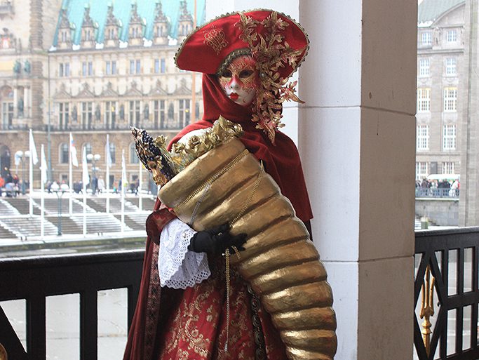 Durante un par de semanas al año, Venecia se viste de Carnaval, un evento que se celebró por primera vez, al menos, hace casi un milenio. El primer documento que lo menciona data de 1094. Todos esos días, la ciudad explota de música y colores. Bandas callejeras que entonan diferentes canciones locales, puestos en los que maquillan a los visitantes, papel picado como una alfombra que cubre el piso, jóvenes con carteles que ofrecen abrazos gratis… Y los disfraces, por supuesto.