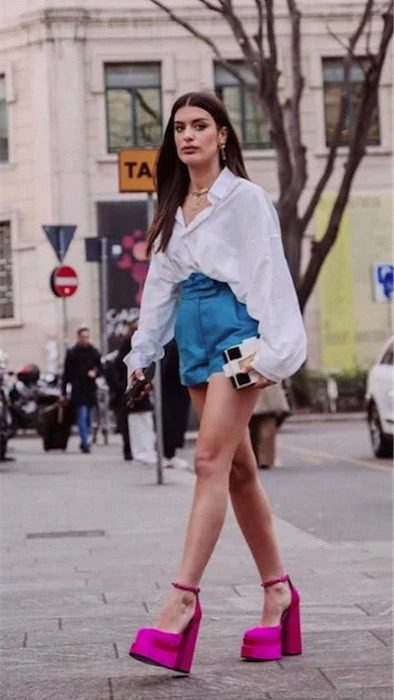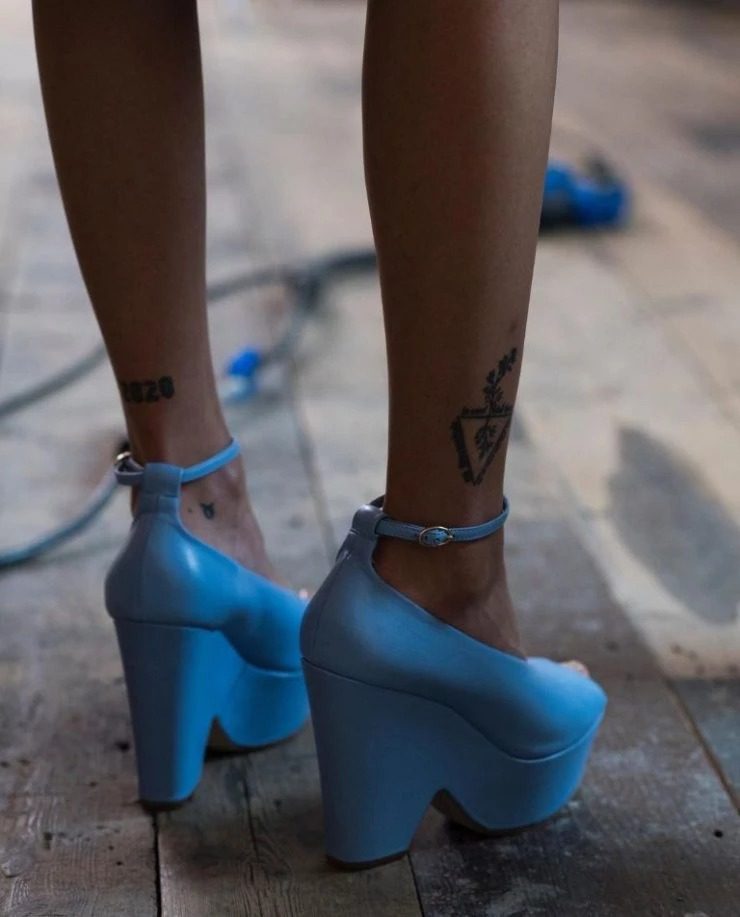 Continuando con la tendencia que arrasa en Europa -tras las plataformas súper altas de Versace que adoptaron celebridades como Ariana Grande– Victoria Beckham sacó como la estrella de su colección un par de plataformas un poco más bajas con gran taco en celeste.