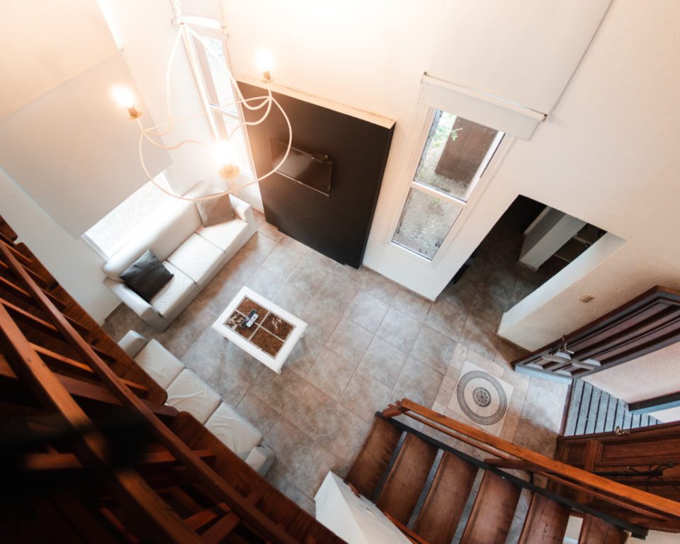 • Dos dormitorios (uno cerrado y otro en planta alta balconeado)