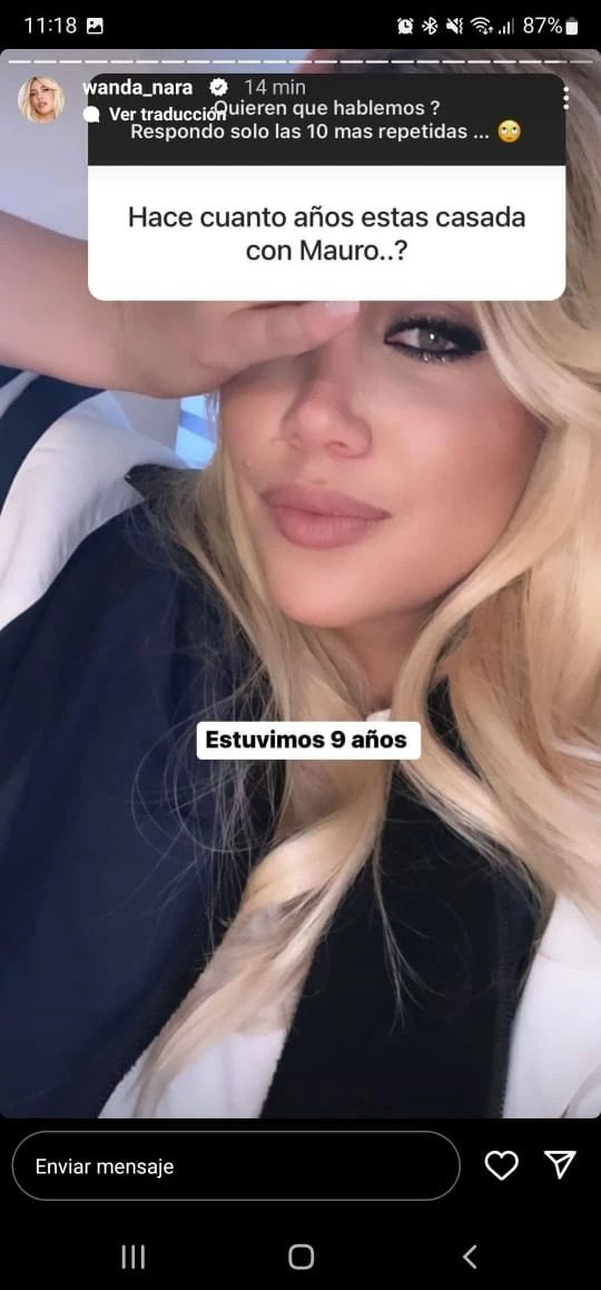 En el día de ayer, divertida como siempre, Wanda decidió proponerle a sus seguidores que le hicieran preguntas de todo tipo, y ella misma se ocupó de contestar esta mañana en redes sociales. Una muy peculiar decía, «¿Hace cuantos años estás casada con Mauro Icardi?». A lo que generando misterio Wanda Nara respondió: «Estuvimos 9 años».