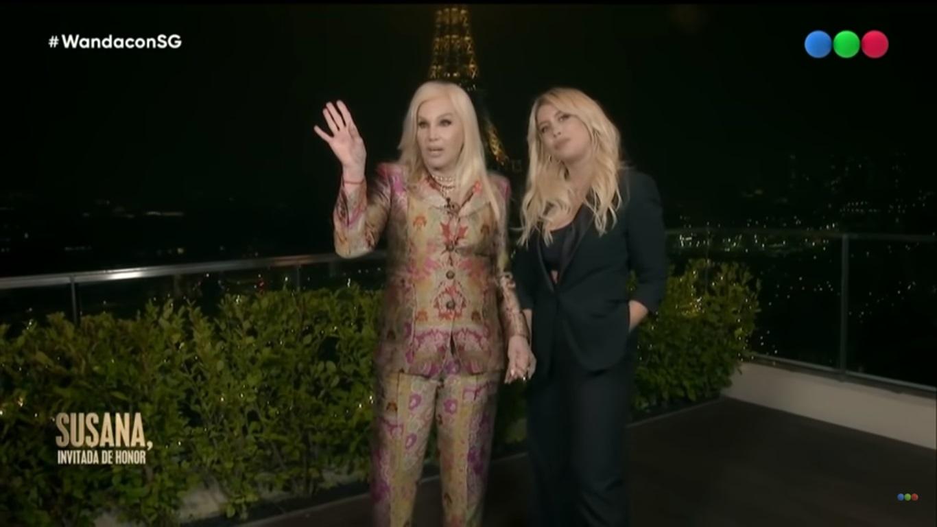 “Buenas noches a todos”, saludó Susana con la Torre Eiffel de fondo. La postal más representativa de la noche parisina y la nota más buscada por el periodismo de espectáculos en el último mes. “Yo quería hablar con vos”, dijo Wanda Nara luego de entrar en el cuadro. “Ahora empieza el Wanda Gate”, anunció Susana, más cómodas en el hotel, sentadas en sillones, siempre con el emblema de la ciudad luz detrás.