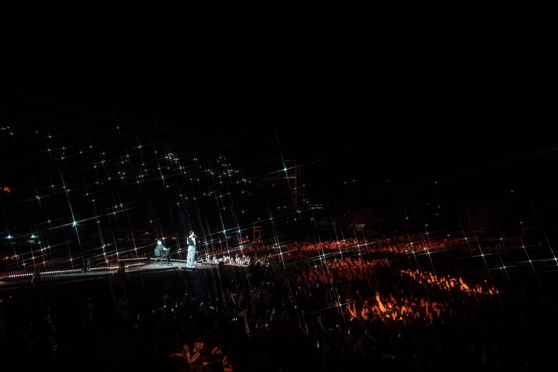 Acompañado por su banda –Natasha Iurcovich (bajo), Facundo ‘Evlay’ Yalve (guitarra), Fran Azorai (teclados) y Tomás Sainz (batería)–, y con la incorporación de vientos, cuerdas y multiinstrumentistas en vivo, cada uno de los dos shows duró más de 2,30 horas, en los que repasó las canciones de sus dos discos –Caravana y Oscuro Éxtasis– y del EP Tres puntos suspensivos, además de sus singles e incluso un pasaje en el que el freestyle tomó la escena.